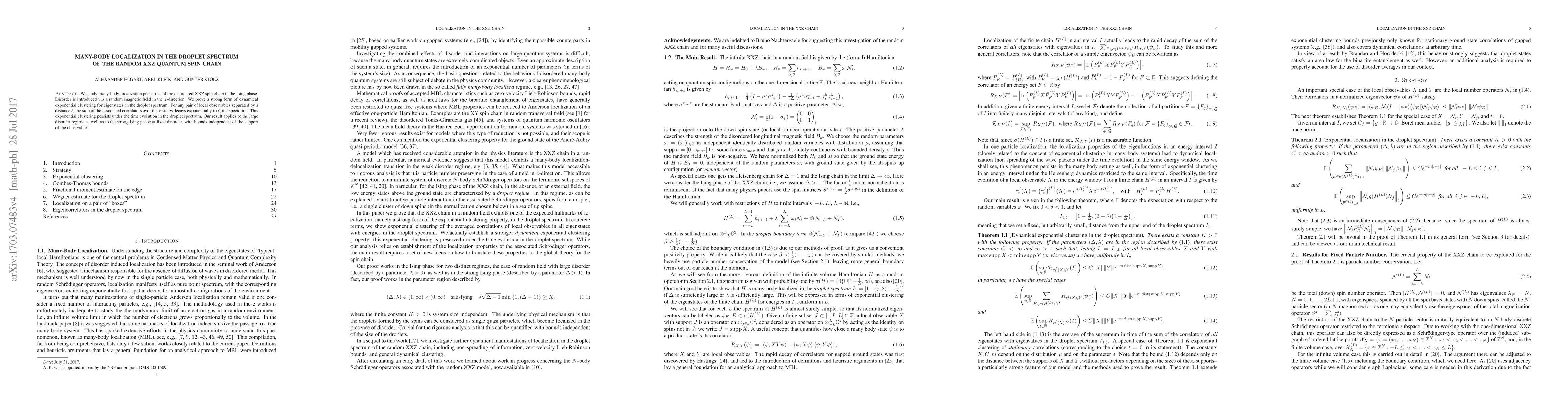 This paper investigates the many-body localization in the disordered XXZ spin chain within the Ising phase, demonstrating strong dynamical exponential clustering in the droplet spectrum. The study proves that correlators between local observables separated by distance $\ell$ decay exponentially in $\ell$, persisting under time evolution, applicable to both large disorder and strong Ising phase scenarios.