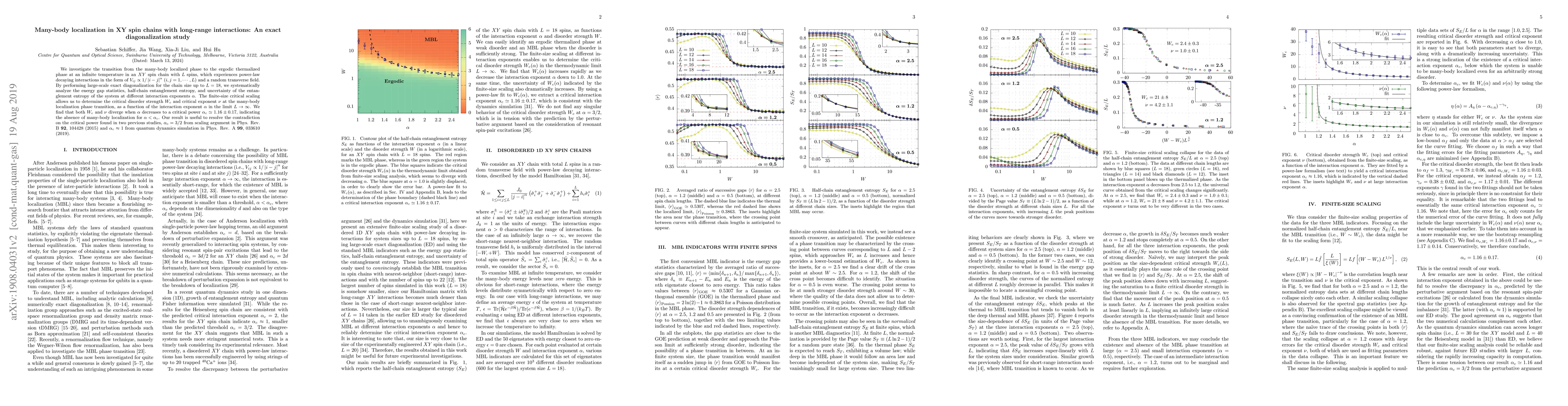 This study investigates the many-body localization transition in XY spin chains with long-range interactions using exact diagonalization. It finds that the critical power for localization, $\alpha_{c}$, is approximately 1.16, resolving discrepancies in previous studies and indicating no localization for $\alpha<\alpha_{c}$.
