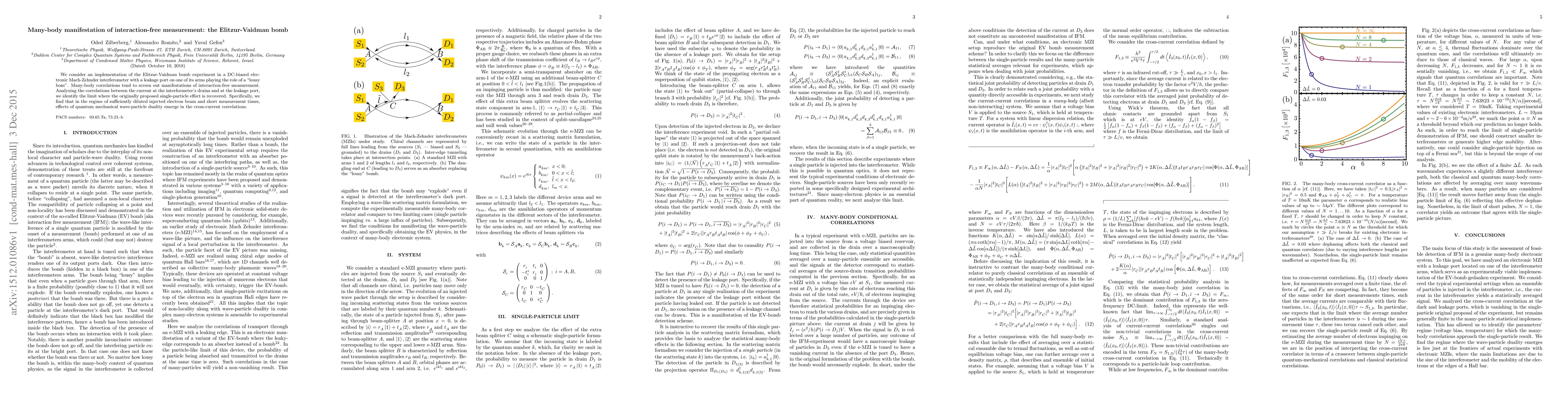 We consider an implementation of the Elitzur-Vaidman bomb experiment in a DC-biased electronic Mach-Zehnder interferometer with a leakage port on one of its arms playing the role of a "lousy bom". Many-body correlations tend to screen out manifestations of interaction-free measurement. Analyzing the correlations between the current at the interformeter's drains and at the leakage port, we identify the limit where the originally proposed single-particle effect is recovered. Specifically, we find that in the regime of sufficiently diluted injected electron beam and short measurement times, effects of quantum mechanical wave-particle duality emerge in the cross-current correlations.