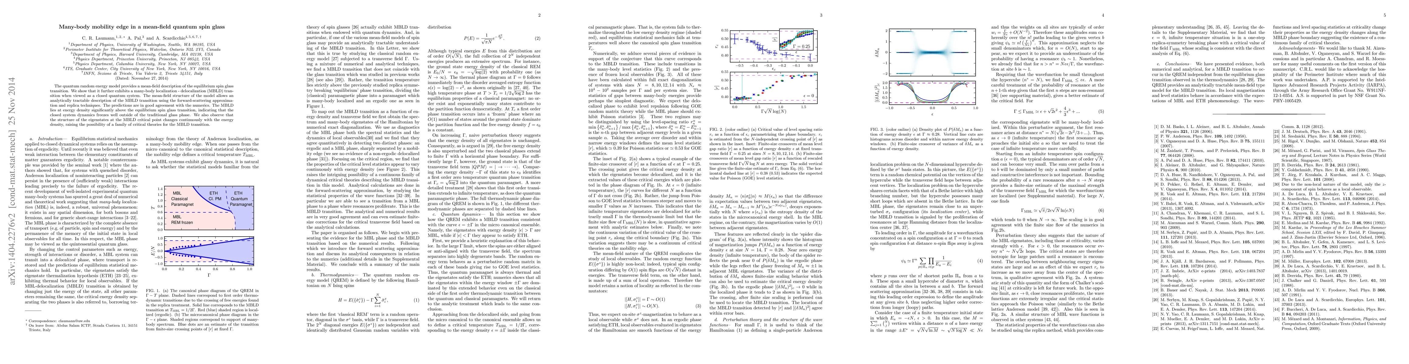 The quantum random energy model provides a mean-field description of the equilibrium spin glass transition. We show that it further exhibits a many-body localization - delocalization (MBLD) transition when viewed as a closed quantum system. The mean-field structure of the model allows an analytically tractable description of the MBLD transition using the forward-scattering approximation and replica techniques. The predictions are in good agreement with the numerics. The MBLD lies at energy density significantly above the equilibrium spin glass transition, indicating that the closed system dynamics freezes well outside of the traditional glass phase. We also observe that the structure of the eigenstates at the MBLD critical point changes continuously with the energy density, raising the possibility of a family of critical theories for the MBLD transition.