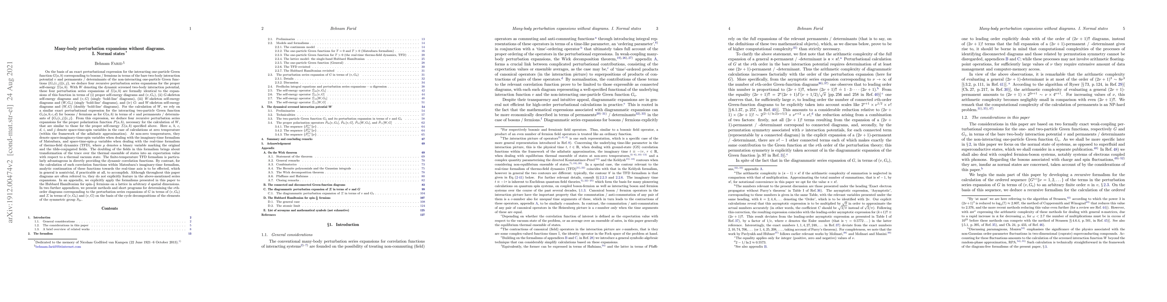 This paper develops four recursive perturbation expansions for the self-energy $\Sigma$ and polarization function $P$ without using Feynman diagrams, based on exact expressions for the interacting Green functions. It applies these methods to normal states and thermal ensembles using Matsubara and thermo-field dynamics formalisms, and demonstrates their utility through the Hubbard model.