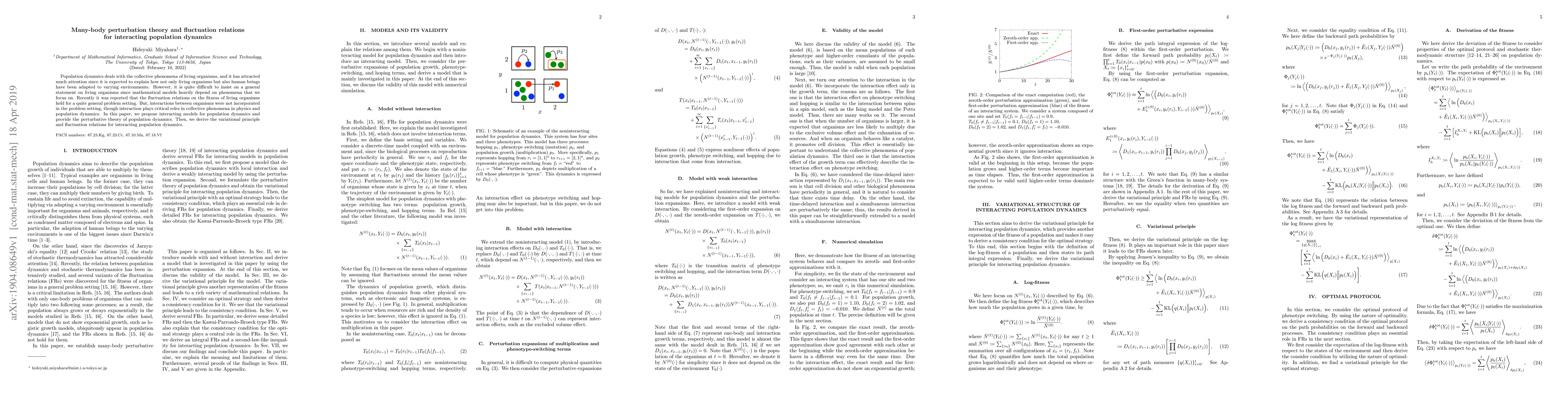 This paper proposes a many-body perturbation theory for interacting population dynamics, incorporating critical organism interactions. It derives fluctuation relations and variational principles to explain how living organisms adapt to varying environments.
