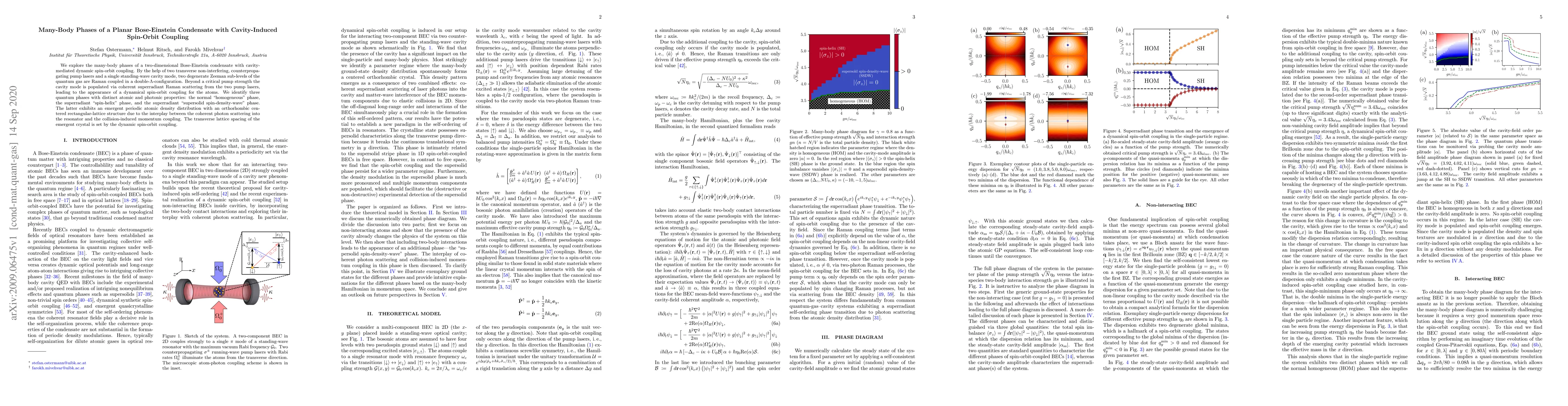 This paper investigates the many-body phases of a 2D Bose-Einstein condensate with cavity-induced spin-orbit coupling, identifying three distinct phases: a normal phase, a superradiant spin-helix phase, and a superradiant supersolid spin-density-wave phase with an emergent orthorhombic lattice.