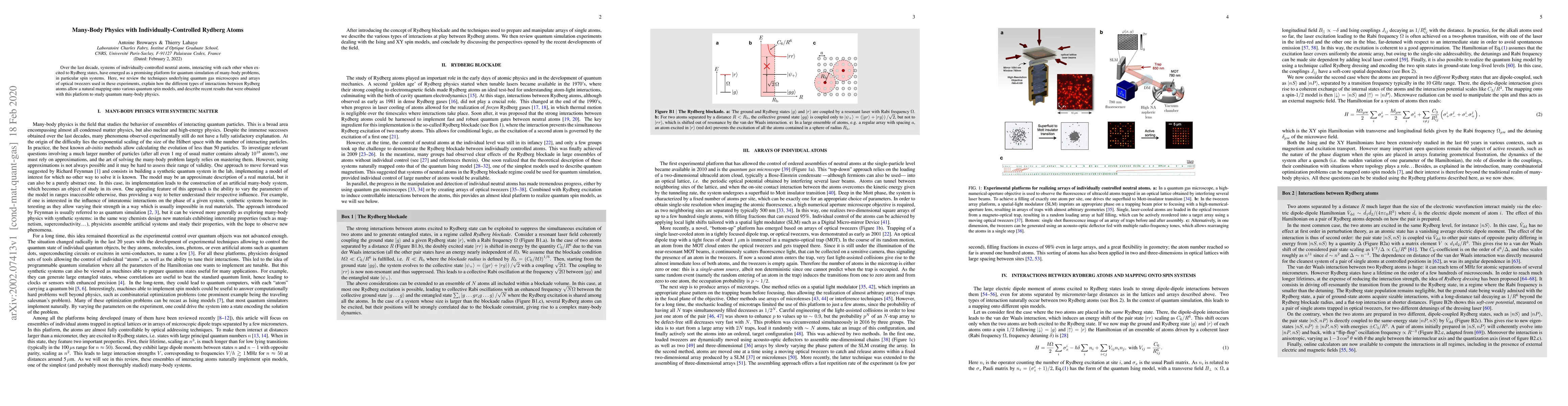 This paper reviews techniques for controlling neutral atoms in Rydberg states to simulate many-body quantum systems, focusing on quantum gas microscopes and optical tweezers, and discusses recent findings on quantum spin models using this platform.