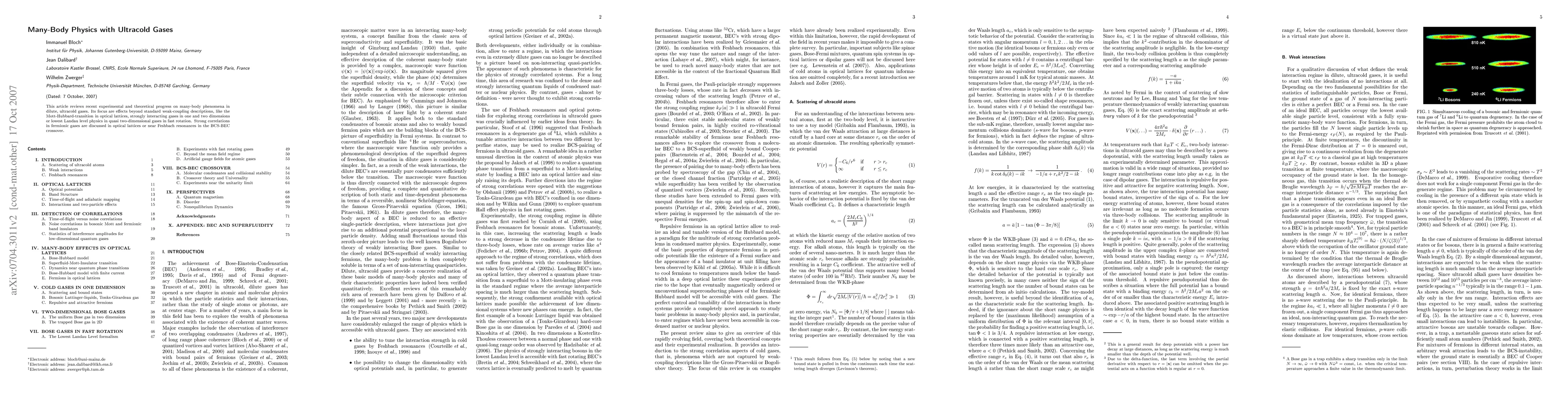 This paper reviews advancements in many-body physics with ultracold gases, highlighting phenomena beyond weak-coupling, such as the Mott-Hubbard transition, strongly interacting gases, and correlations in fermionic systems, particularly in optical lattices and near Feshbach resonances.