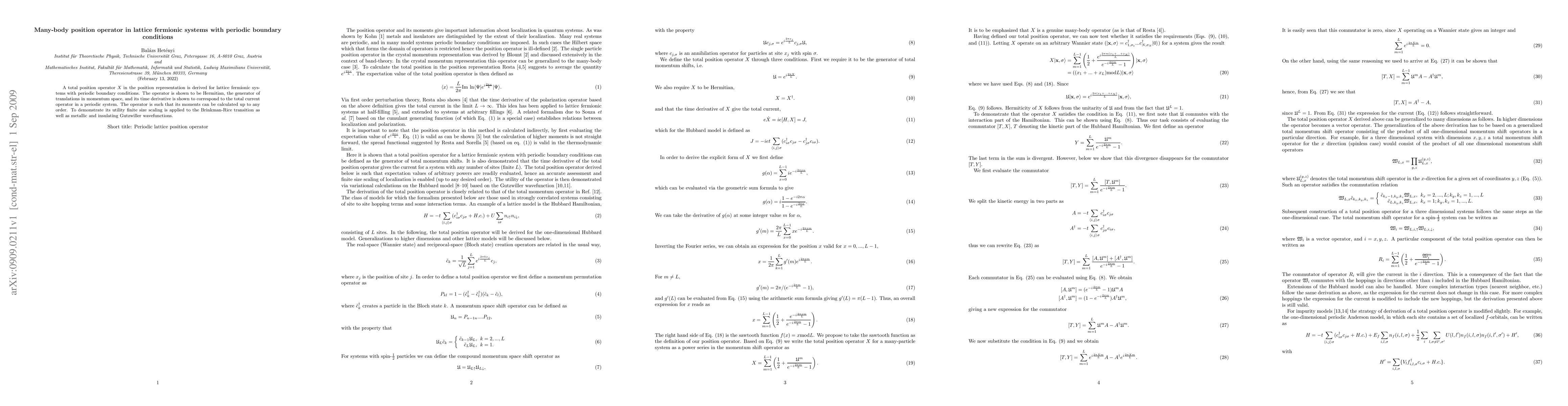 Researchers developed a new position operator for lattice fermionic systems with periodic boundary conditions, which is Hermitian, generates translations in momentum space, and relates to the total current operator.