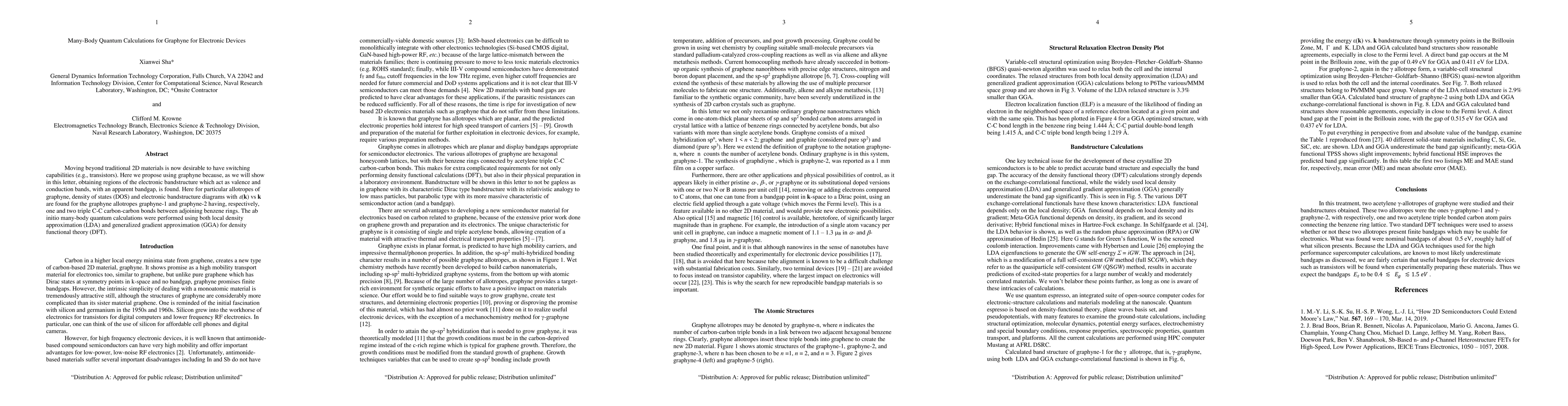 Moving beyond traditional 2D materials is now desirable to have switching capabilities (e.g., transistors). Here we propose using graphyne because, as we will show in this letter, obtaining regions of the electronic bandstructure which act as valence and conduction bands, with an apparent bandgap, is found. Here for particular allotropes of graphyne, density of states (DOS) and electronic bandstructure diagrams with E(k) vs k are found for the graphyne allotropes graphyne-1 and graphyne-2 having, respectively, one and two triple C-C carbon-carbon bonds between adjoining benzene rings. The ab initio many-body quantum calculations were performed using both local density approximation (LDA) and generalized gradient approximation (GGA) for density functional theory (DFT).