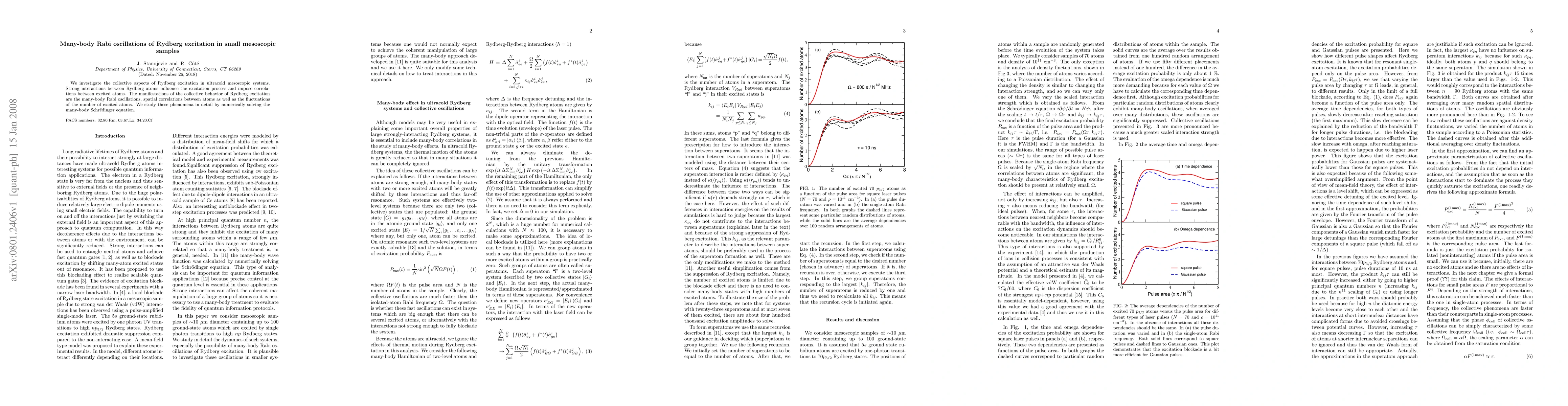 This paper explores the collective behavior of Rydberg excitation in ultracold mesoscopic systems, revealing many-body Rabi oscillations, spatial correlations, and fluctuations in the number of excited atoms due to strong Rydberg atom interactions. The phenomena are studied through numerical solutions of the many-body Schrödinger equation.