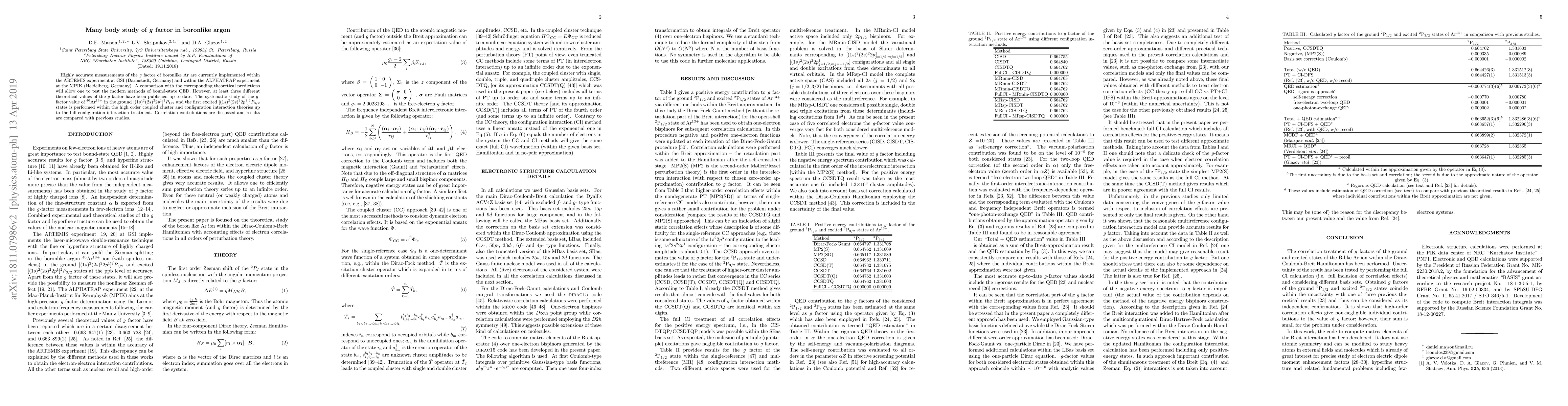 Highly accurate measurements of the $g$-factor of boronlike Ar are currently implemented within the ARTEMIS experiment at GSI (Darmstadt, Germany) and within the ALPHATRAP experiment at the MPIK (Heidelberg, Germany). A comparison with the corresponding theoretical predictions will allow one to test the modern methods of bound-state QED. However, at least three different theoretical values of the \emph{g}-factor have been published up to date. The systematic study of the \emph{g} factor value of Ar$^{13+}$ in the ground $[(1s)^2(2s)^2 2p]^2P_{1/2}$ and the first excited $[(1s)^2(2s)^2 2p]^2P_{3/2}$ states is performed within the high order coupled cluster and configuration interaction theories up to the full configuration interaction treatment. Correlation contributions are discussed and results are compared with previous studies.
