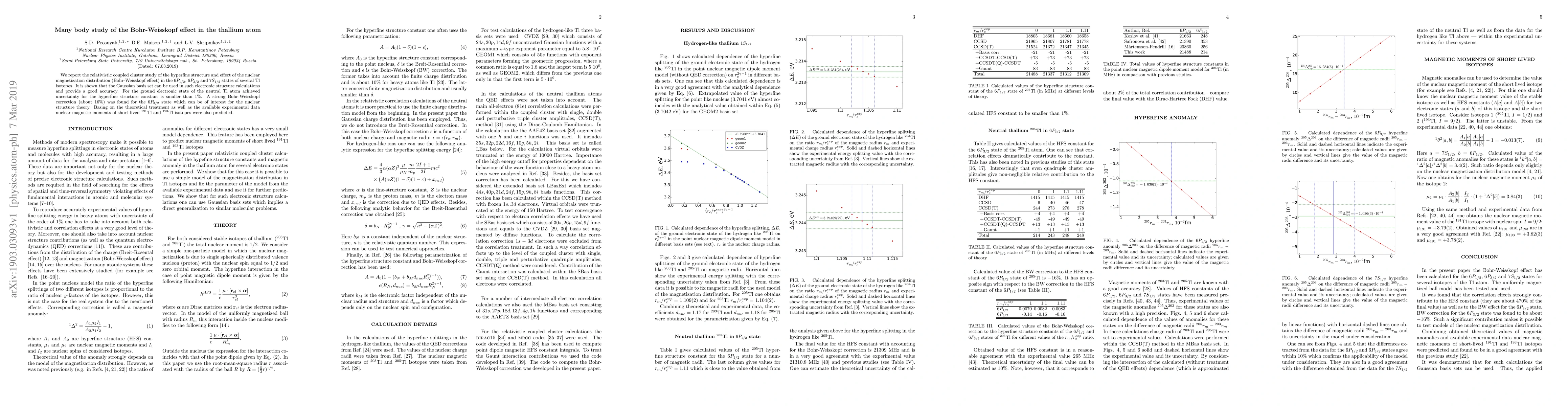 Researchers calculated the Bohr-Weisskopf effect in thallium isotopes using relativistic coupled cluster theory, achieving accuracy and small uncertainty for hyperfine structure constants.