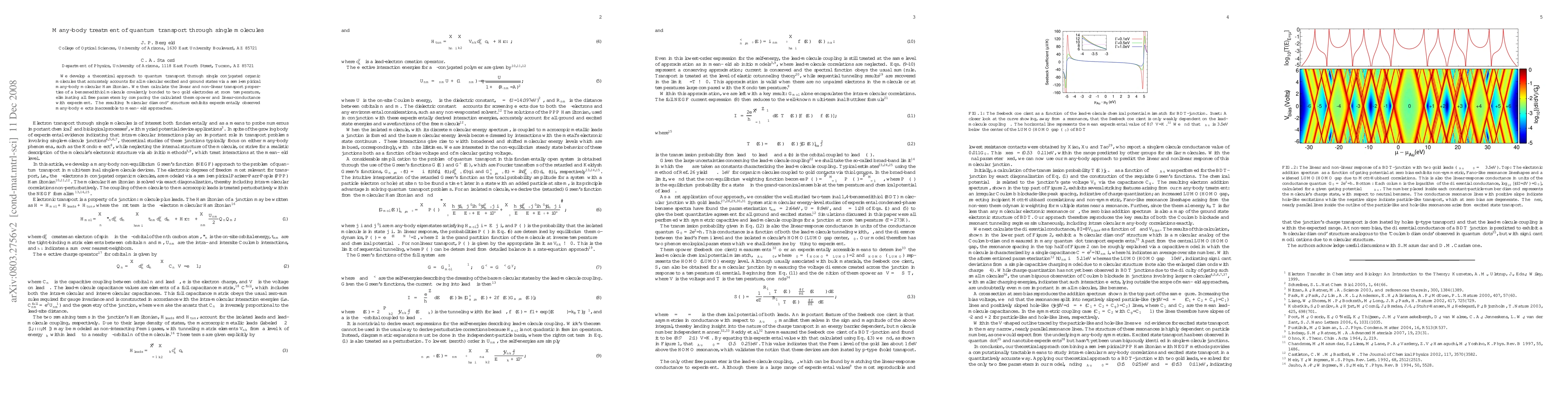 This paper presents a theoretical framework for quantum transport through single conjugated organic molecules, utilizing a many-body Hamiltonian to accurately describe molecular states. It demonstrates the approach by calculating transport properties of a benzenedithiol molecule, showing agreement with experimental data and revealing many-body effects not captured by mean-field methods.