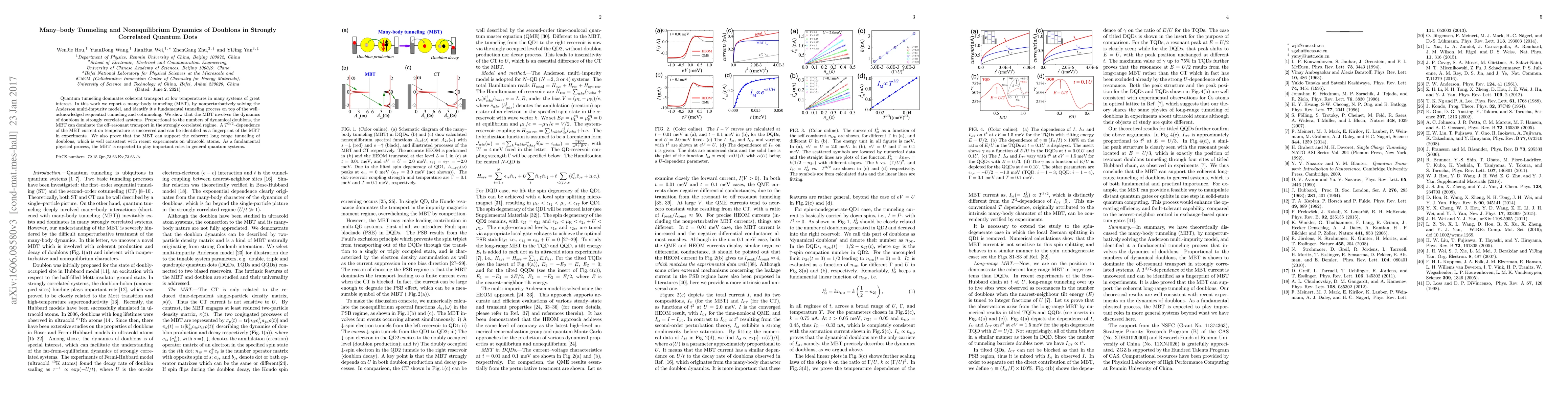 This paper identifies many-body tunneling (MBT) as a fundamental tunneling process in strongly correlated quantum dots, showing that it dominates off-resonant transport in such systems. The MBT exhibits a $T^{3/2}$-dependence on temperature, serving as a potential experimental signature.
