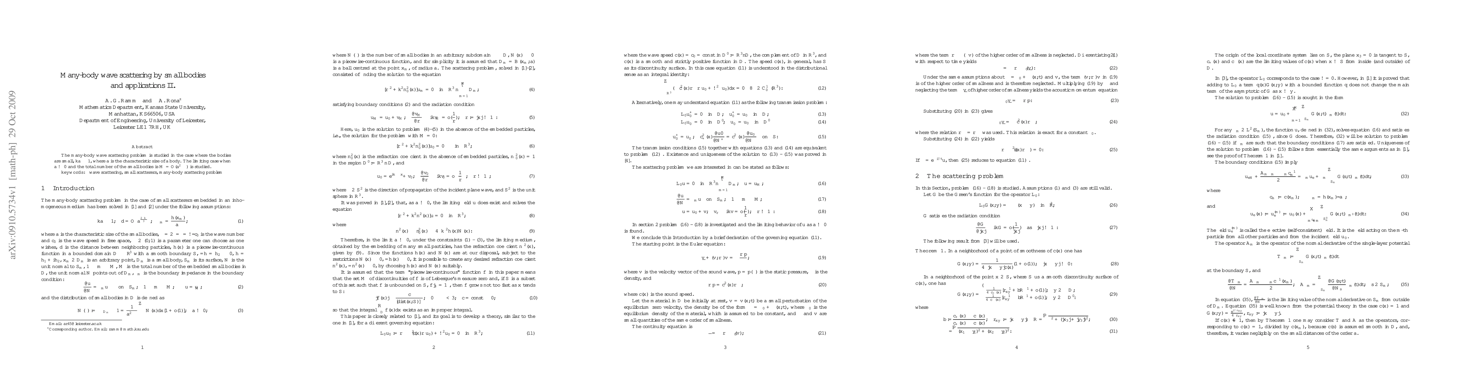 The many-body wave scattering problem is studied in the case where the bodies are small, $ka \ll 1$, where $a$ is the characteristic size of a body. The limiting case when $a \to 0$ and the total number of the small bodies is $M = O (a^{2-\kappa})$ is studied, $\kappa\in (0,1)$ is a parameter, the distance $d$ between neighboring bodies is $d=O(a^{(2-\kappa)/3}$.