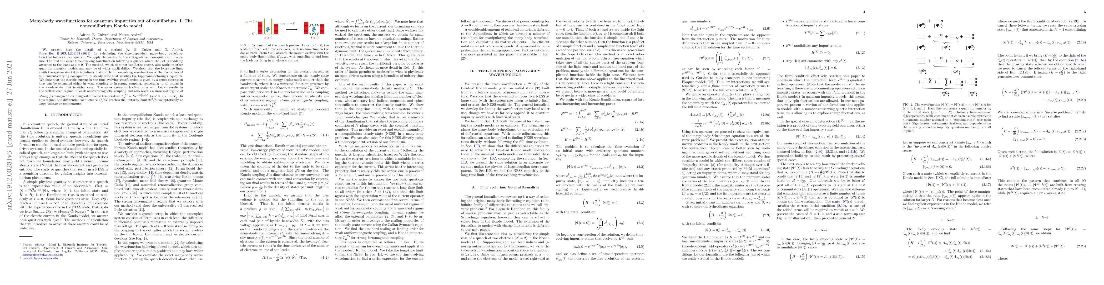 We present here the details of a method [A. B. Culver and N. Andrei, Phys. Rev. B 103, L201103 (2021)] for calculating the time-dependent many-body wavefunction that follows a local quench. We apply the method to the voltage-driven nonequilibrium Kondo model to find the exact time-evolving wavefunction following a quench where the dot is suddenly attached to the leads at $t=0$. The method, which does not use Bethe ansatz, also works in other quantum impurity models and may be of wider applicability. We show that the long-time limit (with the system size taken to infinity first) of the time-evolving wavefunction of the Kondo model is a current-carrying nonequilibrium steady state that satisfies the Lippmann-Schwinger equation. We show that the electric current in the time-evolving wavefunction is given by a series expression that can be expanded either in weak coupling or in strong coupling, converging to all orders in the steady-state limit in either case. The series agrees to leading order with known results in the well-studied regime of weak antiferromagnetic coupling and also reveals a universal regime of strong ferromagnetic coupling with Kondo temperature $T_K^{(F)} = D e^{-\frac{3\pi^2}{8} \rho |J|}$ ($J<0$, $\rho|J|\to\infty$). In this regime, the differential conductance $dI/dV$ reaches the unitarity limit $2e^2/h$ asymptotically at large voltage or temperature.