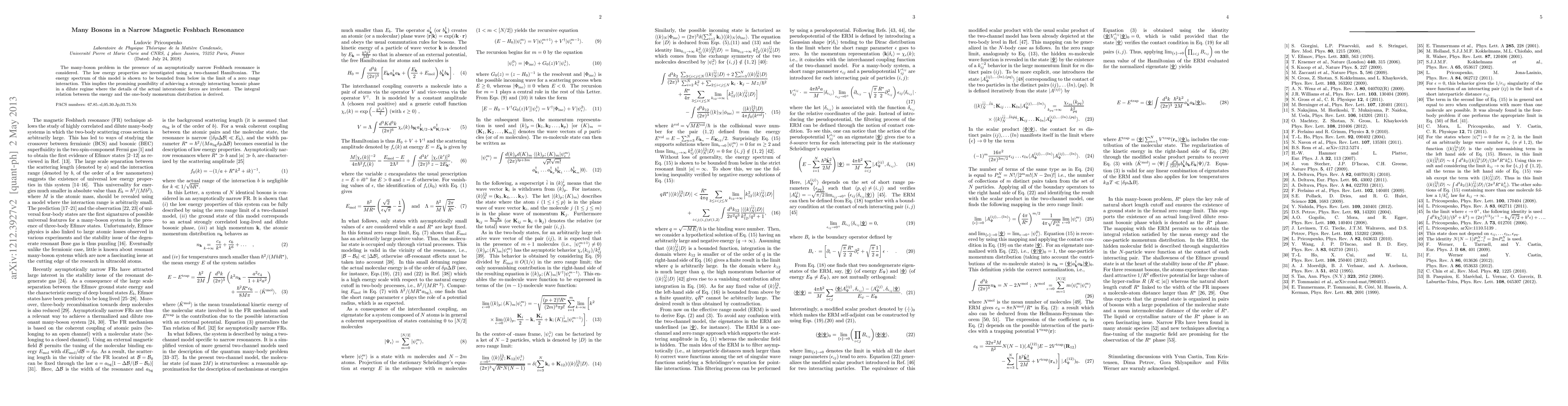 The many-boson problem in presence of an asymptotically narrow Feshbach resonance is considered. The low energy properties are investigated using a two-channel Hamiltonian. The energy spectrum of this model is shown to be bounded from below in the limit of zero range interaction. This implies the promising possibility of achieving a strongly interacting bosonic phase in a dilute regime where the details of the actual interatomic forces are irrelevant. The integral relation between the energy and the one-body momentum distribution is derived.