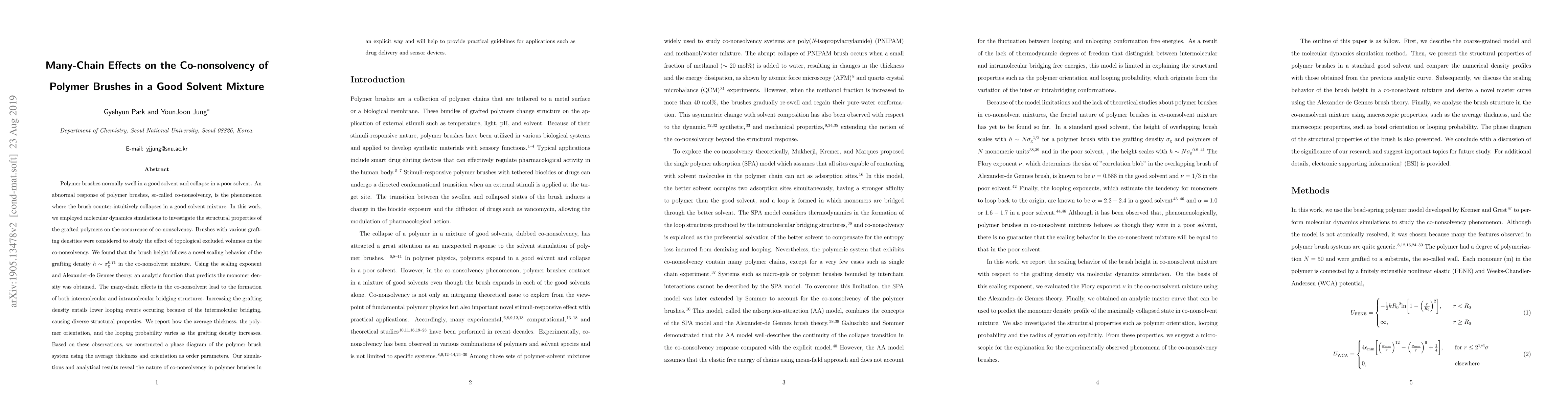 This research investigates the co-nonsolvency phenomenon in polymer brushes using molecular dynamics simulations, revealing a novel scaling behavior of brush height with grafting density. The study uncovers the many-chain effects leading to diverse structural properties and constructs a phase diagram to guide practical applications like drug delivery and sensors.