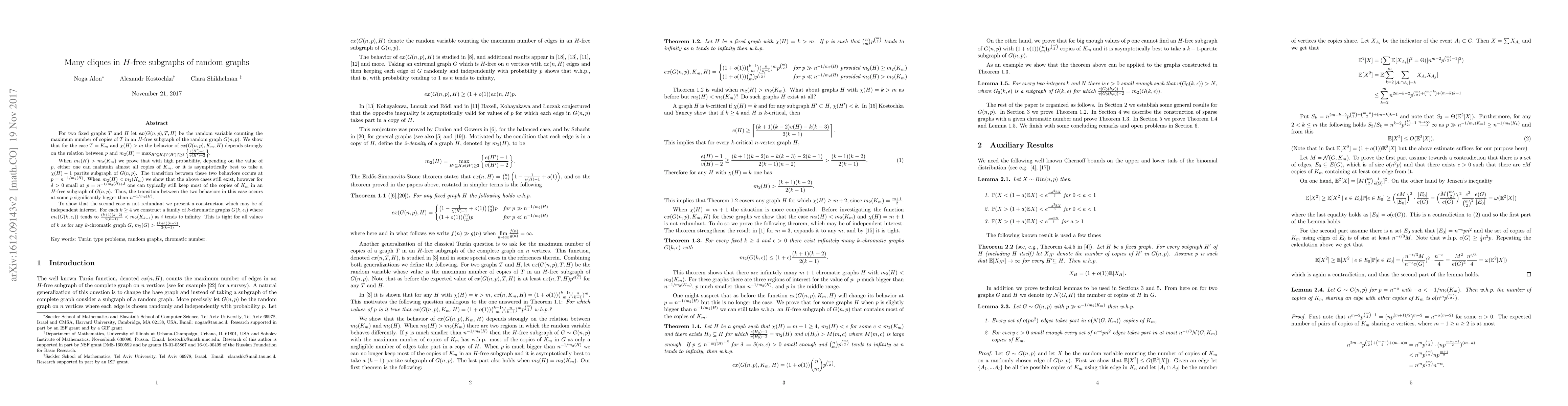 For two fixed graphs $T$ and $H$ let $ex(G(n,p),T,H)$ be the random variable counting the maximum number of copies of $T$ in an $H$-free subgraph of the random graph $G(n,p)$. We show that for the case $T=K_m$ and $\chi(H)> m$ the behavior of $ex(G(n,p),K_m,H)$ depends strongly on the relation between $p$ and $m_2(H)=\max_{H'\subset H, |V(H')|'\geq 3}\left\{ \frac{e(H')-1}{v(H')-2} \right\}$. When $m_2(H)> m_2(K_m)$ we prove that with high probability, depending on the value of $p$, either one can maintain almost all copies of $K_m$, or it is asymptotically best to take a $\chi(H)-1$ partite subgraph of $G(n,p)$. The transition between these two behaviors occurs at $p=n^{-1/m_2(H)}$. When $m_2(H)< m_2(K_m)$ we show that the above cases still exist, however for $\delta>0$ small at $p=n^{-1/m_2(H)+\delta}$ one can typically still keep most of the copies of $K_m$ in an $H$-free subgraph of $G(n,p)$. Thus, the transition between the two behaviors in this case occurs at some $p$ significantly bigger than $n^{-1/m_2(H)}$. To show that the second case is not redundant we present a construction which may be of independent interest. For each $k \geq 4$ we construct a family of $k$ chromatic graphs $G(k,\epsilon_i)$ where $m_2(G(k,\epsilon_i))$ tends to $\frac{(k+1)(k-2)}{2(k-1)} (< m_2(K_{k-1}))$ as $i$ tends to infinity. This is tight for all values of $k$