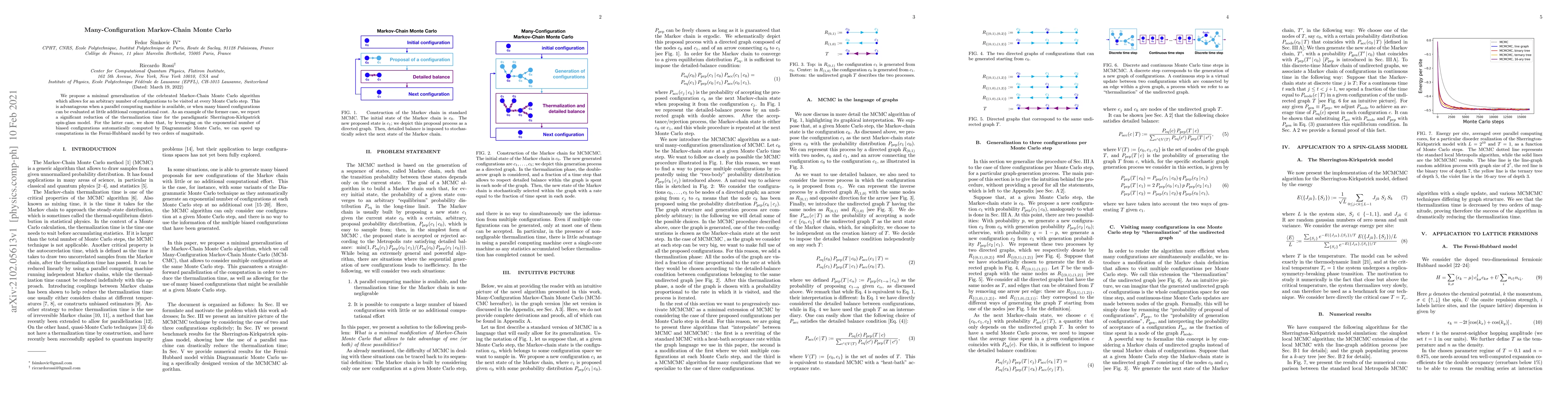 This paper introduces a generalized Markov-Chain Monte Carlo method that allows multiple configurations per step, enhancing efficiency in parallel computing and speeding up simulations in models like the Sherrington-Kirkpatrick spin-glass and Fermi-Hubbard. The approach notably reduces thermalization time and computation time by leveraging additional biased configurations.