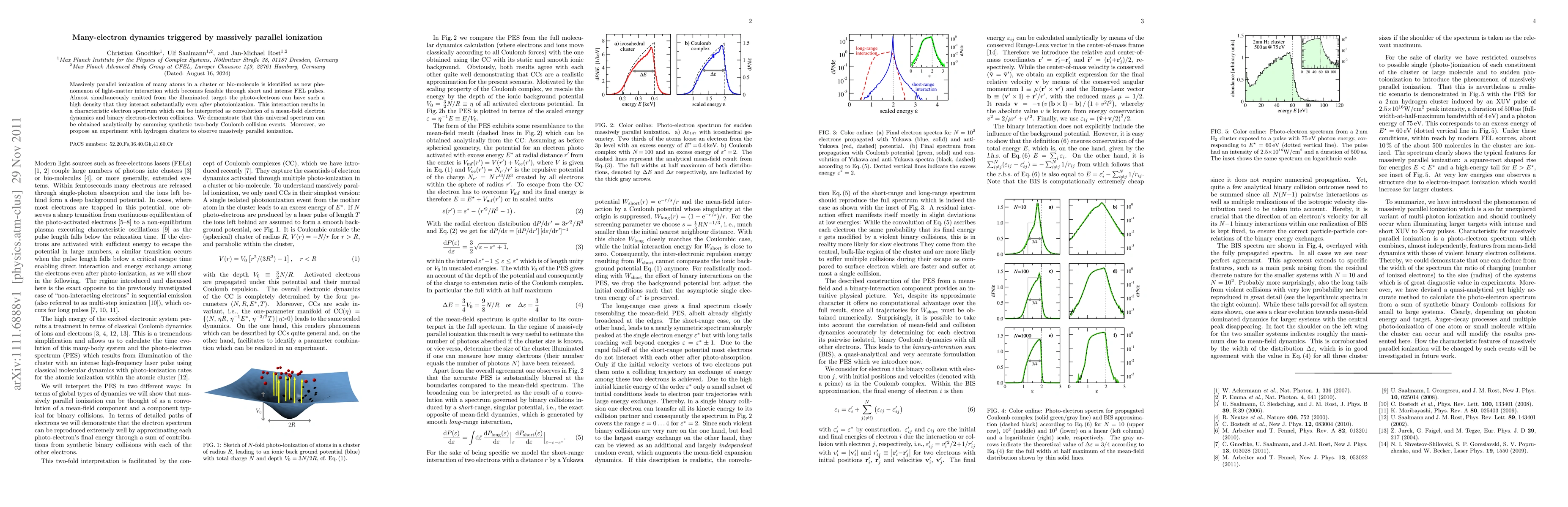 This paper explores the phenomenon of many-electron dynamics following massively parallel ionization in clusters or bio-molecules using intense FEL pulses, revealing a characteristic electron spectrum resulting from mean-field dynamics and electron-electron collisions. The authors propose an analytical method to obtain this spectrum and suggest an experiment with hydrogen clusters to observe this effect.