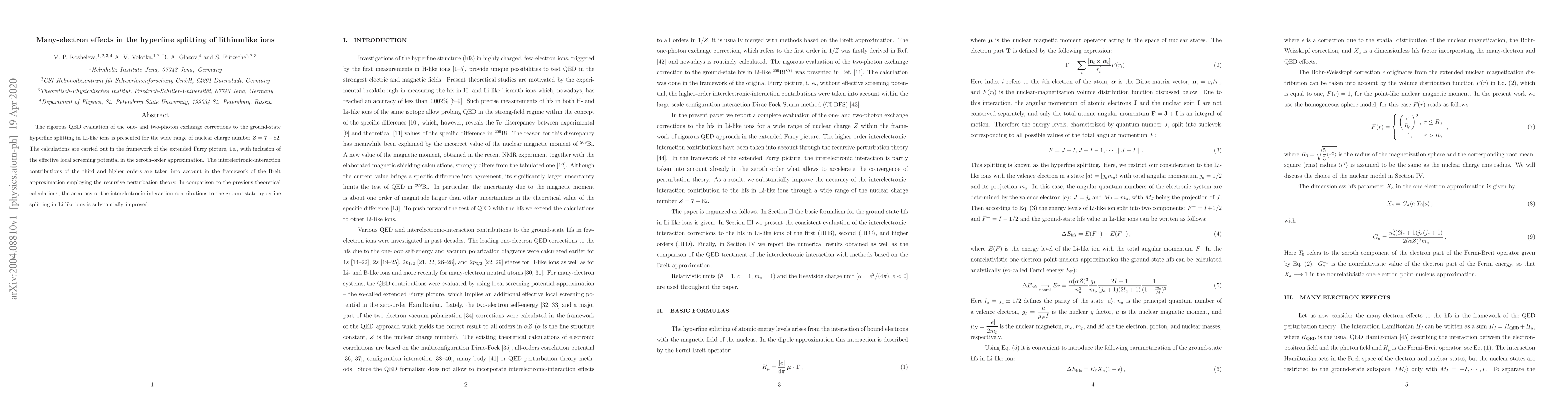 This paper presents a precise QED evaluation of the hyperfine splitting in lithium-like ions, incorporating one- and two-photon exchange corrections across a broad range of nuclear charge numbers. The study significantly enhances the accuracy of interelectronic-interaction contributions by using the extended Furry picture and recursive perturbation theory.
