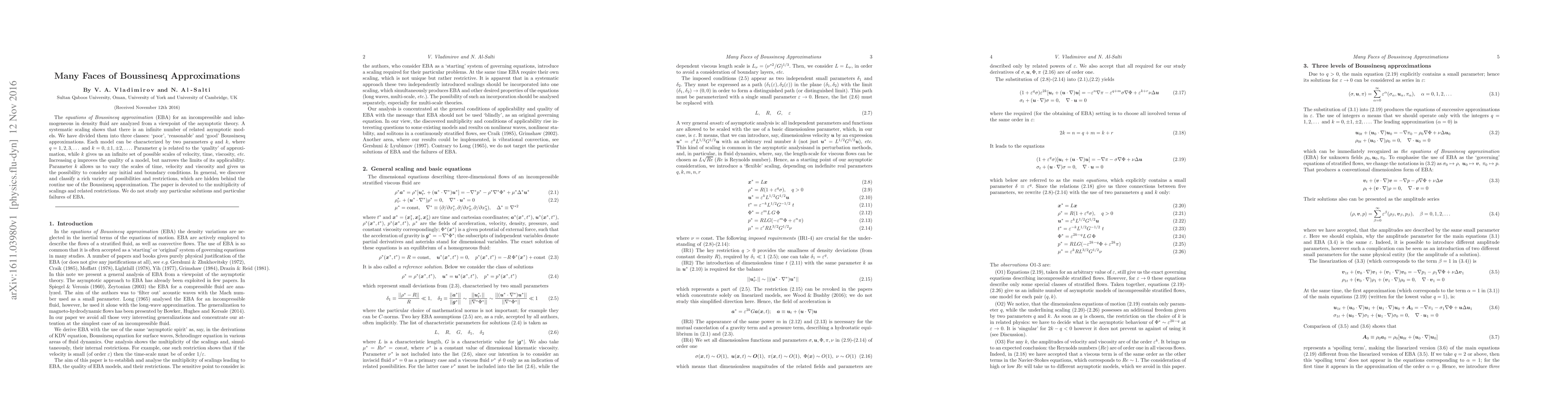Researchers have identified multiple asymptotic models related to Boussinesq approximations, classifying them into three categories: poor, reasonable, and good, with infinite possibilities for scale variation, improving quality but narrowing applicability.