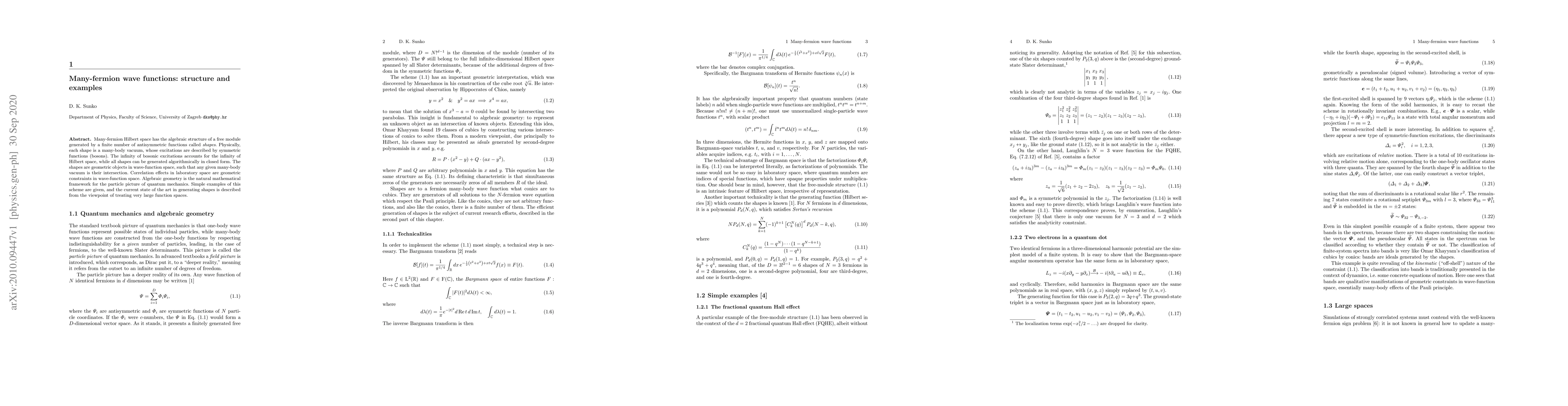 Many-fermion Hilbert space has the algebraic structure of a free module generated by a finite number of antisymmetric functions called shapes. Physically, each shape is a many-body vacuum, whose excitations are described by symmetric functions (bosons). The infinity of bosonic excitations accounts for the infinity of Hilbert space, while all shapes can be generated algorithmically in closed form. The shapes are geometric objects in wave-function space, such that any given many-body vacuum is their intersection. Correlation effects in laboratory space are geometric constraints in wave-function space. Algebraic geometry is the natural mathematical framework for the particle picture of quantum mechanics. Simple examples of this scheme are given, and the current state of the art in generating shapes is described from the viewpoint of treating very large function spaces.