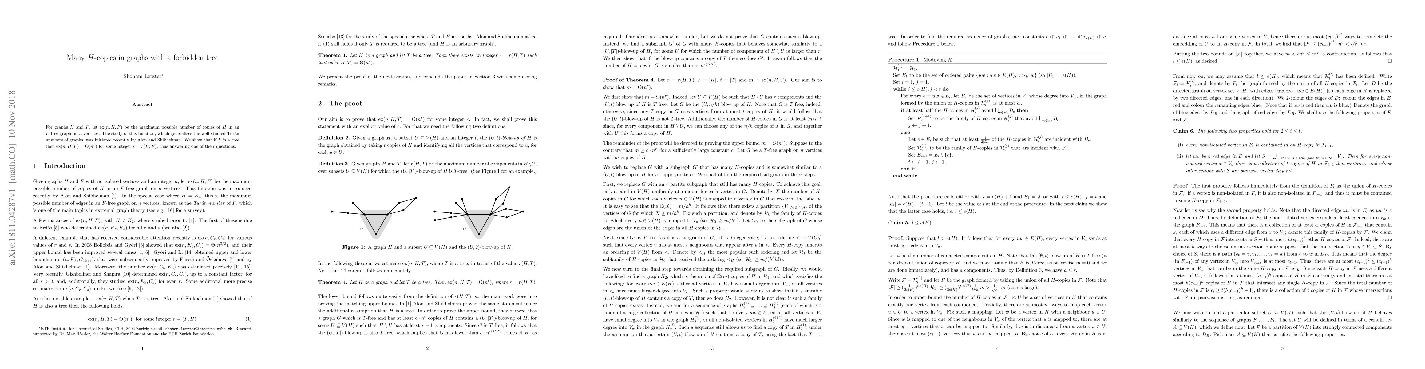 The paper shows that in graphs with a forbidden tree, the maximum possible number of copies of $H$ is $ heta(n^r)$ for some integer $r$. This solves a question by Alon and Shikhelman about the generalization of Turan numbers.