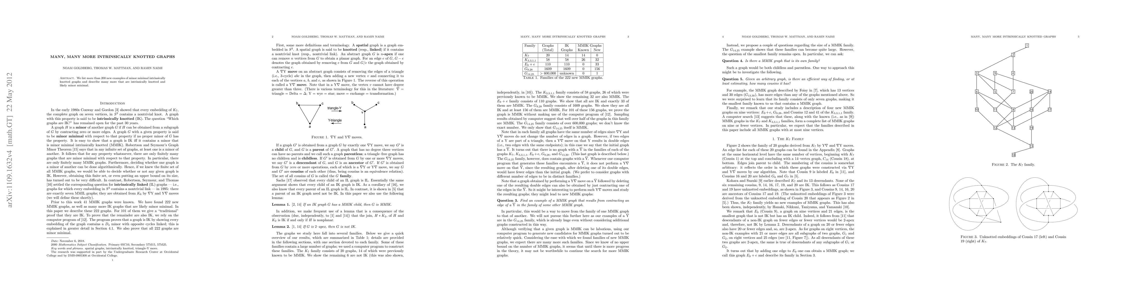 This paper presents over 200 new examples of minor minimal intrinsically knotted graphs and suggests the existence of many more likely intrinsically knotted and minor minimal graphs. The findings expand the understanding of knot theory within the context of graph theory.