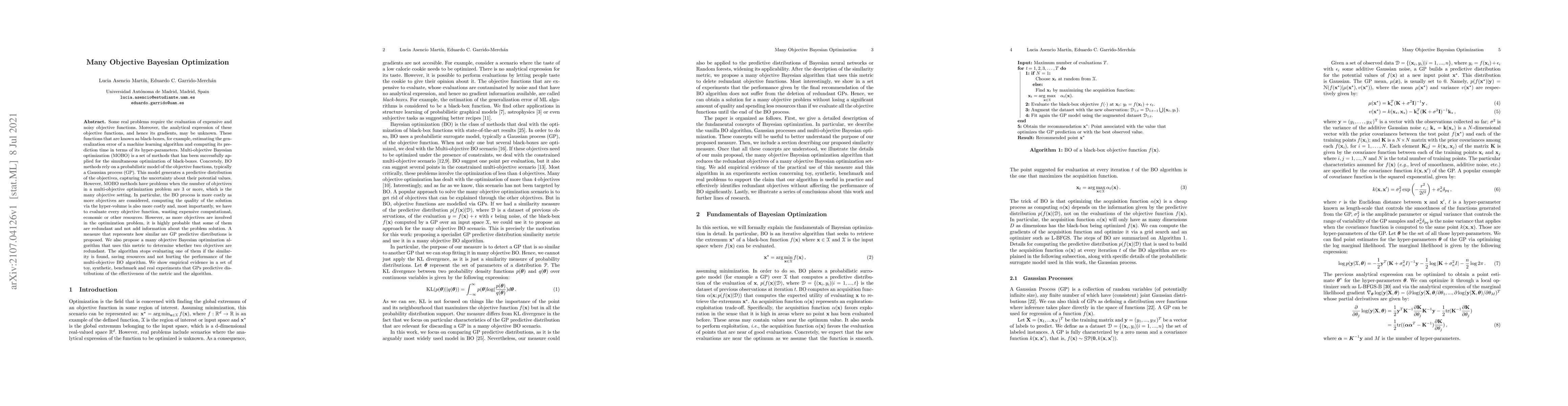 This paper proposes a new method for multi-objective Bayesian optimization (MOBO) that addresses the challenges of optimizing many objectives (three or more), which can be computationally expensive and resource-intensive. It introduces a similarity measure between Gaussian process predictive distributions to identify redundant objectives, thereby saving computational resources without compromising optimization performance.