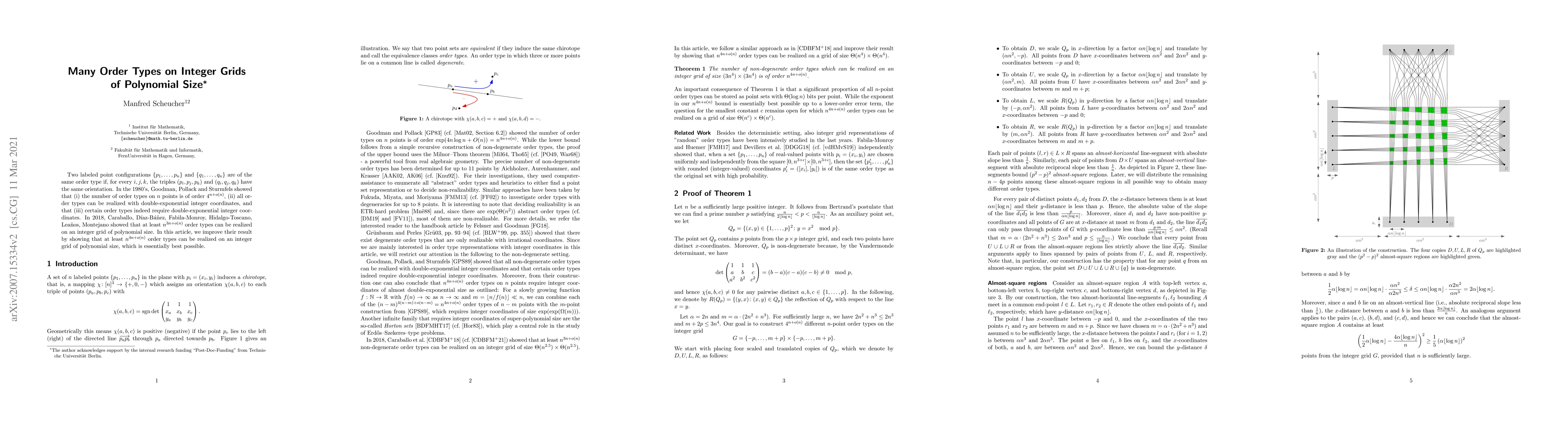 Researchers improved a previous result showing that at least $n^{4n+o(n)}$ order types can be realized on an integer grid of polynomial size, surpassing an earlier estimate of $n^{3n+o(n)}$. This breakthrough demonstrates the feasibility of certain complex order types with double-exponential integer coordinates.