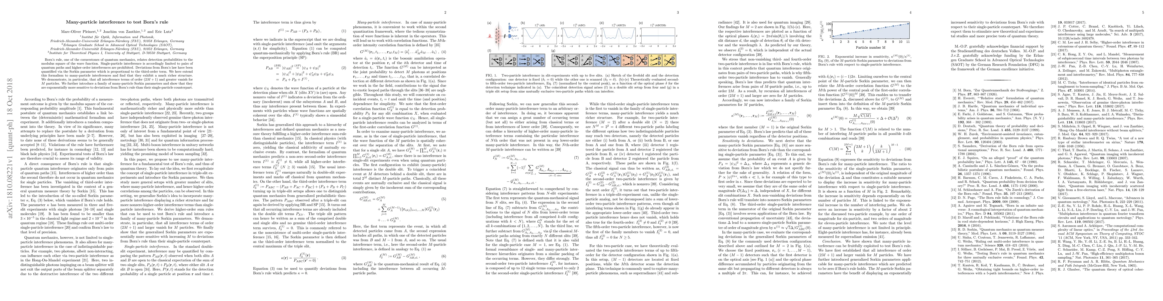 Born's rule, one of the cornerstones of quantum mechanics, relates detection probabilities to the modulus square of the wave function. Single-particle interference is accordingly limited to pairs of quantum paths and higher-order interferences are prohibited. Deviations from Born's law have been quantified via the Sorkin parameter which is proportional to the third-order term. We here extend this formalism to many-particle interferences and find that they exhibit a much richer structure. We demonstrate, in particular, that all interference terms of order $(2M+1)$ and greater vanish for $M$ particles. We further introduce a family of many-particle Sorkin parameters and show that they are exponentially more sensitive to deviations from Born's rule than their single-particle counterpart.