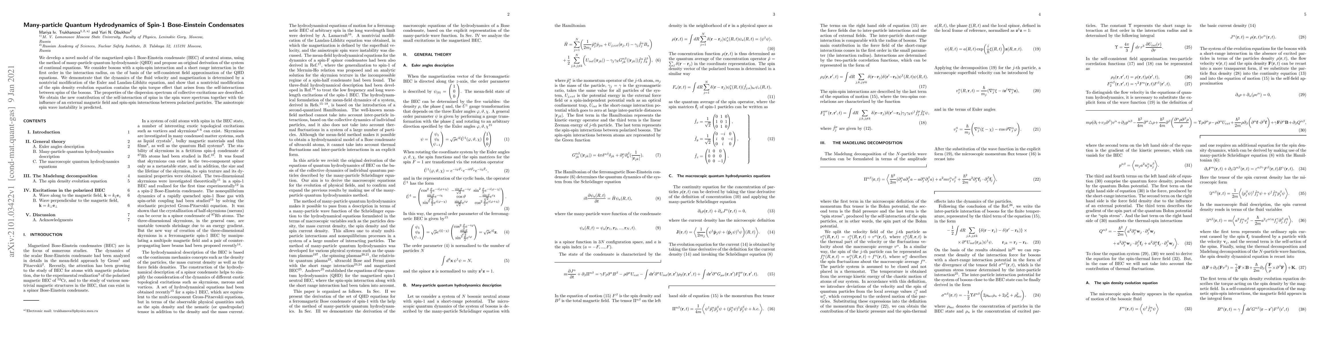 We develop a novel model of the magnetized spin-1 Bose-Einstein condensate (BEC) of neutral atoms, using the method of many-particle quantum hydrodynamic (QHD) and propose an original derivation of the system of continual equations. We consider bosons with a spin-spin interaction and a short range interaction in the first order in the interaction radius, on the of basis of the self-consistent field approximation of the QHD equations. We demonstrate that the dynamics of the fluid velocity and magnetization is determined by a nontrivial modification of the Euler and Landau-Lifshitz equation, and show that a nontrivial modification of the spin density evolution equation contains the spin torque effect that arises from the self-interactions between spins of the bosons. The properties of the dispersion spectrum of collective excitations are described. We obtain the new contribution of the self-interaction of spins in the spin wave spectrum together with the influence of an external magnetic field and spin-spin interactions between polarized particles. The anisotropic spin wave instability is predicted.