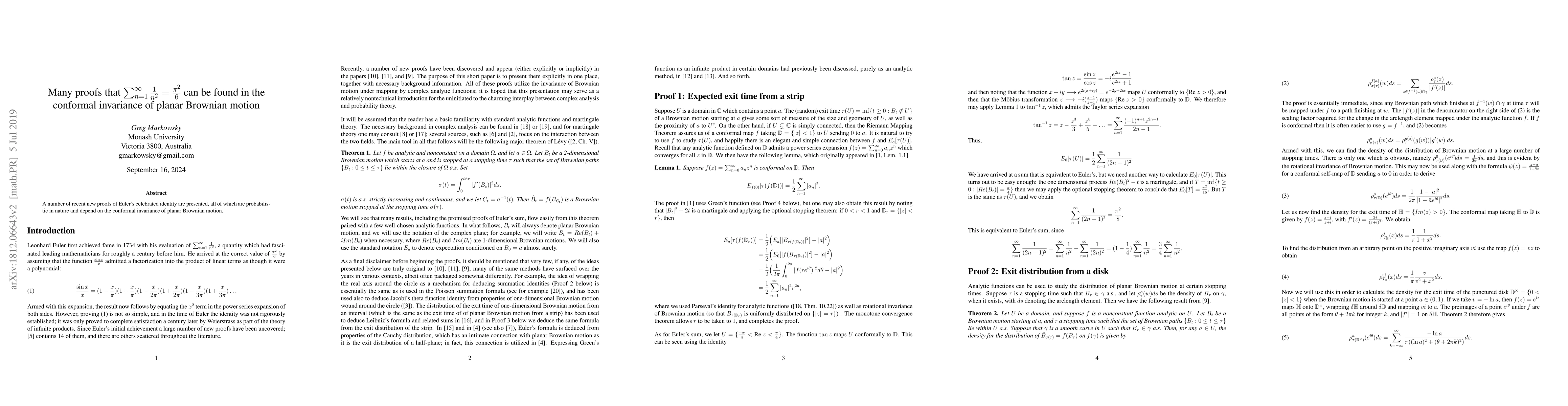 A number of recent new proofs of Euler's celebrated identity are presented, all of which are probabilistic in nature and depend on the conformal invariance of planar Brownian motion.