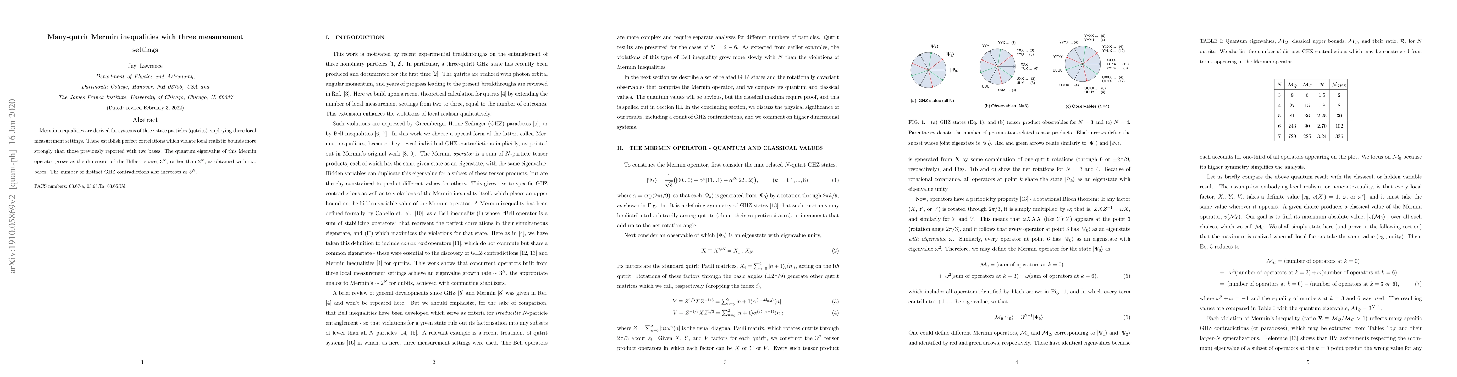 This paper derives Mermin inequalities for systems of three-state particles (qutrits) using three measurement settings, showing stronger violations of local realistic bounds compared to two-basis settings. The quantum eigenvalue of the Mermin operator scales with the dimension of the Hilbert space, $3^N$, rather than $2^N$.