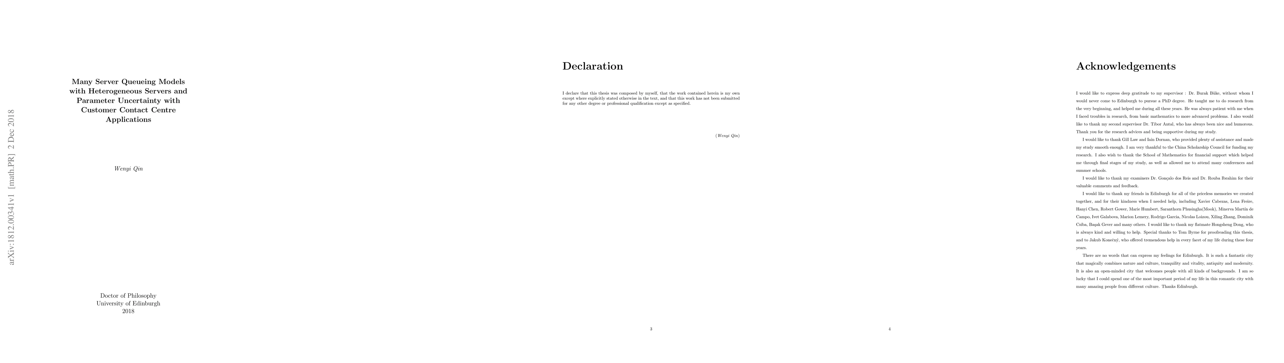 In this thesis, we study the queueing systems with heterogeneous servers and service rate uncertainty under the Halfin-Whitt heavy traffic regime. First, we analyse many server queues with abandonments when service rates are i.i.d. random variables. We derive a diffusion approximation using a novel method. The diffusion has a random drift, and hence depending on the realisations of service rates, the system can be in Quality Driven (QD), Efficiency Driven (ED) or Quality-Efficiency-Driven (QED) regime. When the system is under QD or QED regime, the abandonments are negligible in the fluid limit, but when it is under ED regime, the probability of abandonment will converge to a non-zero value. We then analyse the optimal staffing levels to balance holding costs with staffing costs combining these three regimes. We also analyse how the variance of service rates influence abandonment rate. Next, we focus on the state space collapse (SSC) phenomenon. We prove that under some assumptions, the system process will collapse to a lower dimensional process without losing essential information. We first formulate a general method to prove SSC results inside pools for heavy traffic systems using the hydrodynamic limit idea. Then we work on the SSC in multi-class queueing networks under the Halfin-Whitt heavy traffic when service rates are i.i.d. random variables within pools. For such systems, exact analysis provides limited insight on the general properties. Alternatively, asymptotic analysis by diffusion approximation proves to be effective. Further, limit theorems, which state the diffusively scaled system process weakly converges to a diffusion process, are usually the central part in such asymptotic analysis. The SSC result is key to proving such a limit. We conclude by giving examples on how SSC is applied to the analysis of systems.