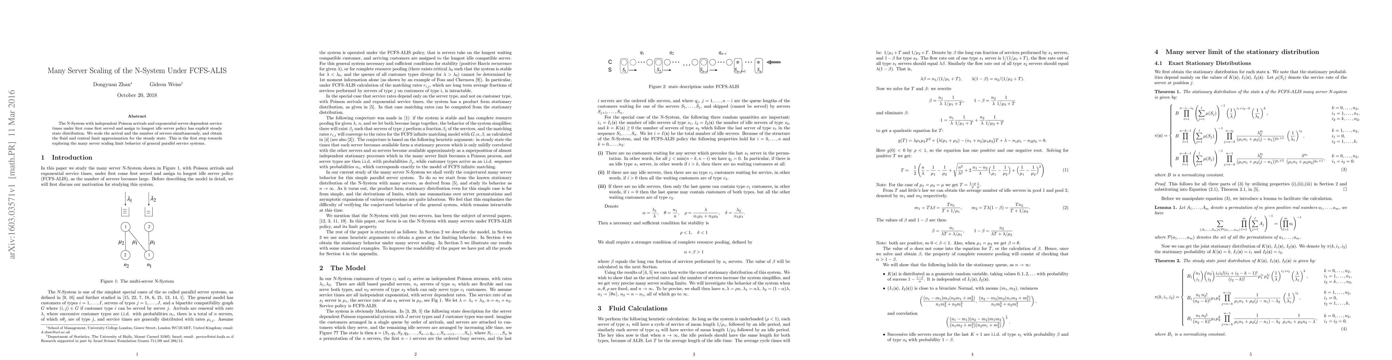 This paper investigates the steady-state distribution of the N-System under FCFS and ALIS policies, providing fluid and central limit approximations for large-scale server configurations. This foundational work sets the stage for further exploration of parallel service systems in many server scaling scenarios.