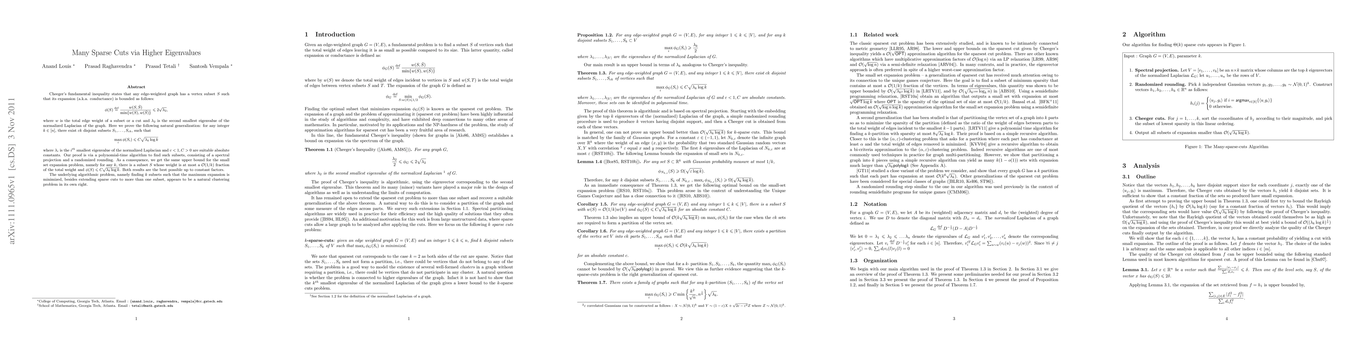 Researchers prove that for any graph, there exist k disjoint subsets whose expansion is at most C times the square root of the kth eigenvalue of the Laplacian, with a polynomial-time algorithm to find such subsets.