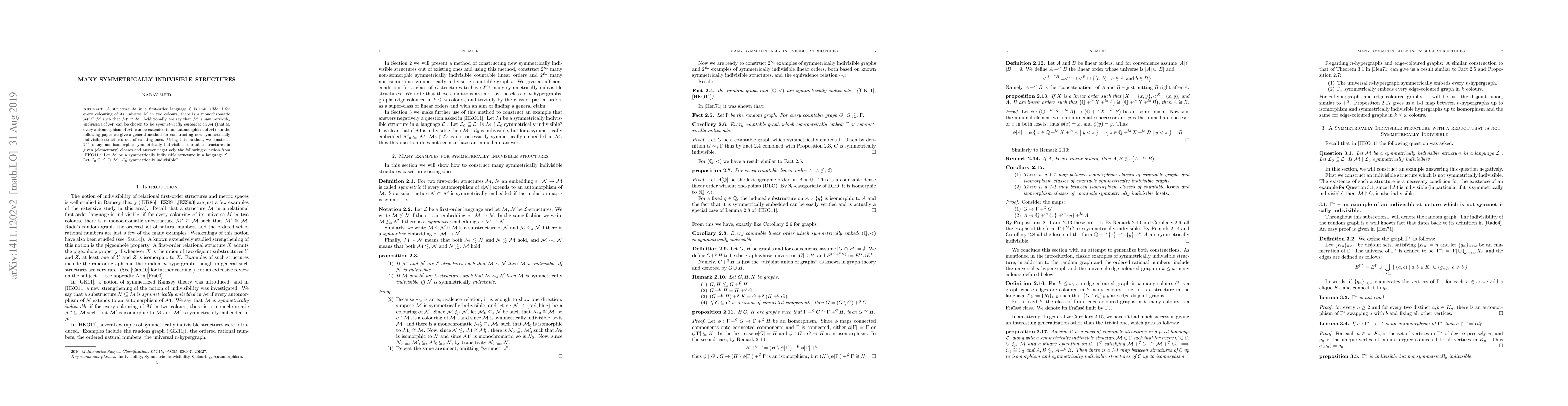 A structure $\mathcal{M}$ in a first-order language $\mathcal{L}$ is \emph{indivisible} if for every coloring of $M$ in two colors, there is a monochromatic $\mathcal{M}^{\prime} \subseteq \mathcal{M}$ such that $\mathcal{M}^{\prime}\cong\mathcal{M}$. Additionally, we say that $\mathcal{M}$ is symmetrically indivisible if $\mathcal{M}^{\prime}$ can be chosen to be \emph{symmetrically embedded} in $\mathcal{M}$ (that is, every automorphism of $\mathcal{M}^{\prime}$ can be extended to an automorphism of $\mathcal{M}$). In the following paper we give a general method for constructing new symmetrically indivisible structures out of existing ones. Using this method, we construct $2^{\aleph_0}$ many non-isomorphic symmetrically indivisible countable structures in given (elementary) classes and answer negatively the following question asked by A. Hasson, M. Kojman and A. Onshuus in "On symmetric indivisibility of countable structures" (Cont. Math. 558(1):453--466): Let $\mathcal{M}$ be a symmetrically indivisible structure in a language $\mathcal{L}$. Let $\mathcal{L}_0 \subseteq \mathcal{L}$. Is $ \mathcal{M} \upharpoonright \mathcal{L}_0$ symmetrically indivisible?