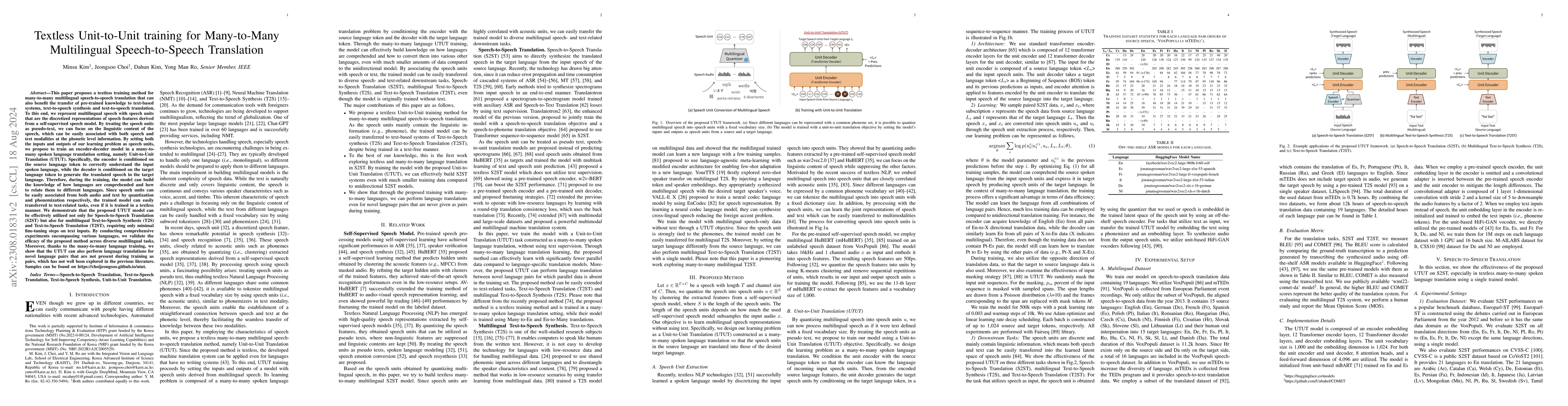 This paper proposes a unified speech and text representation learning method using Unit-to-Unit Translation (UTUT) to enable many-to-many spoken language translation across multiple languages, facilitating diverse multilingual speech- and text-related tasks. Experiments demonstrate the model's effectiveness in multilingual Speech-to-Speech Translation, Text-to-Speech Synthesis, and Text-to-Speech Translation.