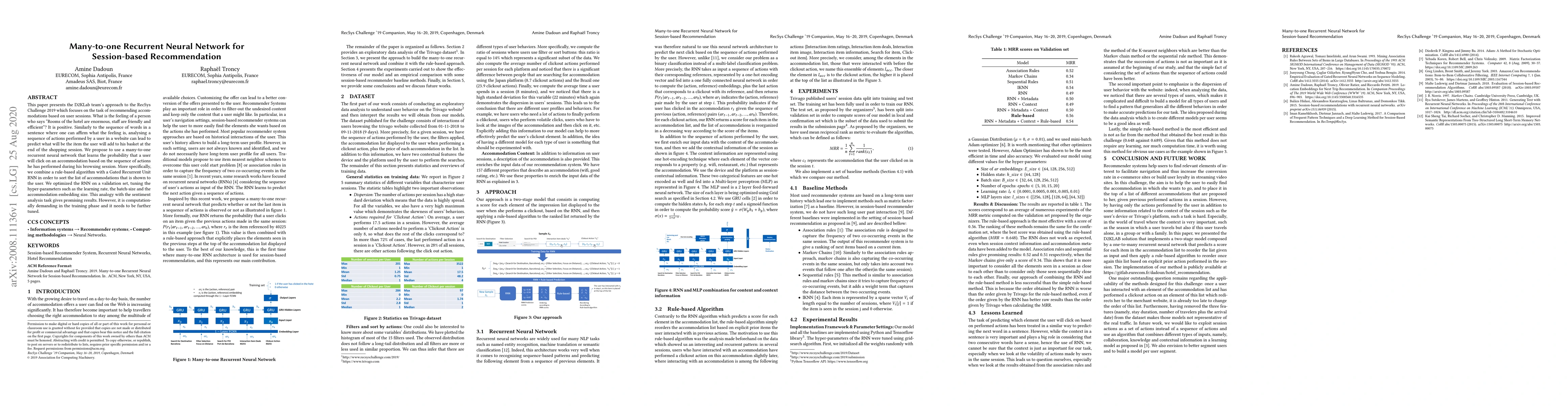 This paper presents the D2KLab team's approach to the RecSys Challenge 2019 which focuses on the task of recommending accommodations based on user sessions. What is the feeling of a person who says "Rooms of the hotel are enormous, staff are friendly and efficient"? It is positive. Similarly to the sequence of words in a sentence where one can affirm what the feeling is, analysing a sequence of actions performed by a user in a website can lead to predict what will be the item the user will add to his basket at the end of the shopping session. We propose to use a many-to-one recurrent neural network that learns the probability that a user will click on an accommodation based on the sequence of actions he has performed during his browsing session. More specifically, we combine a rule-based algorithm with a Gated Recurrent Unit RNN in order to sort the list of accommodations that is shown to the user. We optimized the RNN on a validation set, tuning the hyper-parameters such as the learning rate, the batch-size and the accommodation embedding size. This analogy with the sentiment analysis task gives promising results. However, it is computationally demanding in the training phase and it needs to be further tuned.