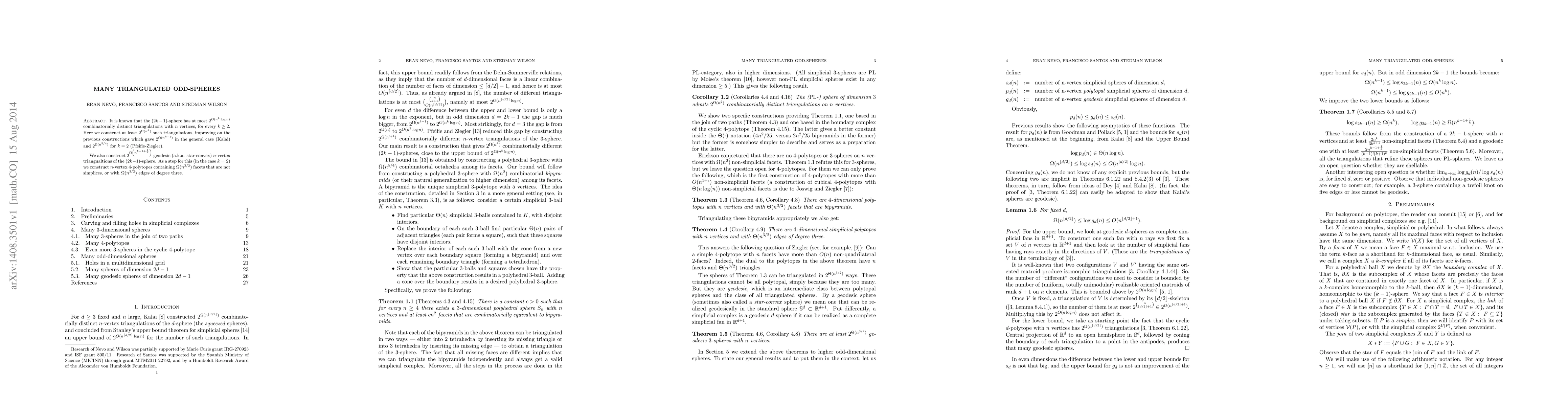 It is known that the $(2k-1)$-sphere has at most $2^{O(n^k \log n)}$ combinatorially distinct triangulations with $n$ vertices, for every $k\ge 2$. Here we construct at least $2^{\Omega(n^k)}$ such triangulations, improving on the previous constructions which gave $2^{\Omega(n^{k-1})}$ in the general case (Kalai) and $2^{\Omega(n^{5/4})}$ for $k=2$ (Pfeifle-Ziegler). We also construct $2^{\Omega\left(n^{k-1+\frac{1}{k}}\right)}$ geodesic (a.k.a. star-convex) $n$-vertex triangualtions of the $(2k-1)$-sphere. As a step for this (in the case $k=2$) we construct $n$-vertex $4$-polytopes containing $\Omega(n^{3/2})$ facets that are not simplices, or with $\Omega(n^{3/2})$ edges of degree three.