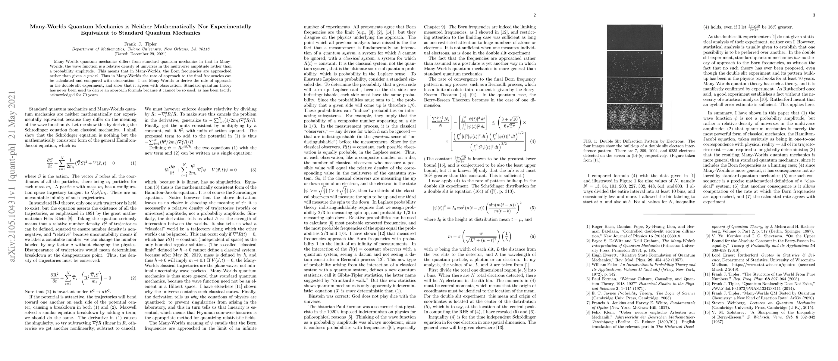 This paper argues that Many-Worlds quantum mechanics is not mathematically or experimentally equivalent to standard quantum mechanics due to its distinct interpretation of the wave function. It demonstrates that Many-Worlds can derive an approach rate to final frequencies, as shown in the double slit experiment, which standard quantum mechanics cannot.