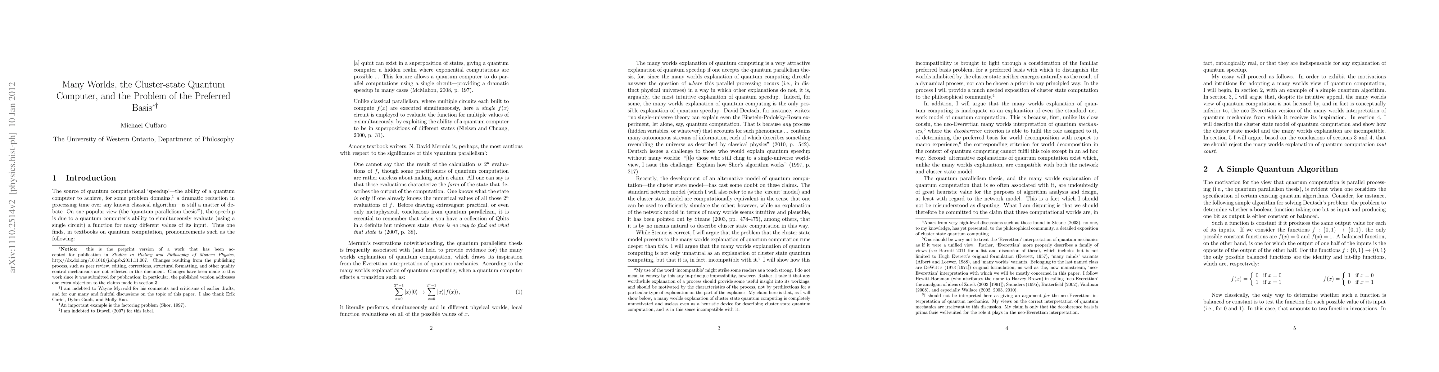 The paper presents a detailed comparison between the many-worlds explanation of quantum computation and the cluster-state model, identifying incompatibilities and arguing for the rejection of the former in favor of alternative explanations.