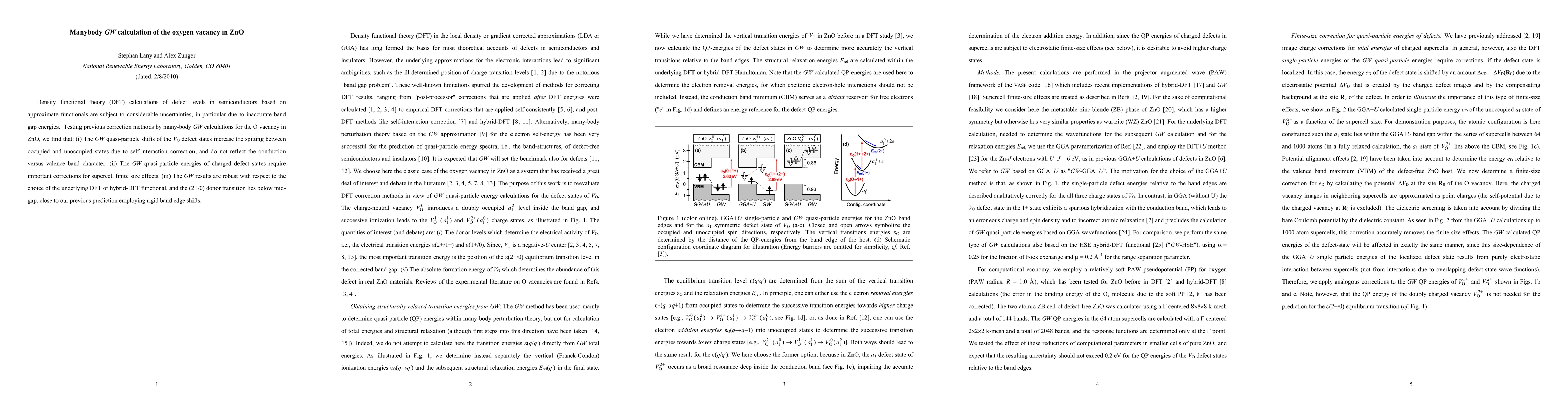 Many-body GW calculations reveal that defect states in ZnO exhibit inconsistencies with band gap energies and require corrections for finite size effects, affecting the accuracy of donor transitions.