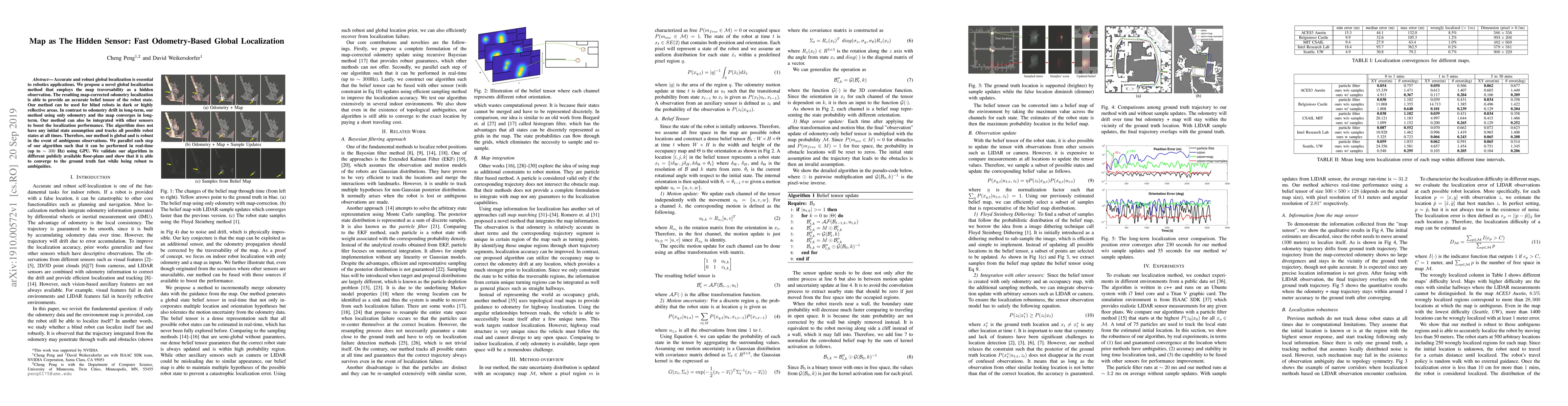 Accurate and robust global localization is essential to robotics applications. We propose a novel global localization method that employs the map traversability as a hidden observation. The resulting map-corrected odometry localization is able to provide an accurate belief tensor of the robot state. Our method can be used for blind robots in dark or highly reflective areas. In contrast to odometry drift in long-term, our method using only odometry and the map converges in longterm. Our method can also be integrated with other sensors to boost the localization performance. The algorithm does not have any initial state assumption and tracks all possible robot states at all times. Therefore, our method is global and is robust in the event of ambiguous observations. We parallel each step of our algorithm such that it can be performed in real-time (up to ~ 300 Hz) using GPU. We validate our algorithm in different publicly available floor-plans and show that it is able to converge to the ground truth fast while being robust to ambiguities.