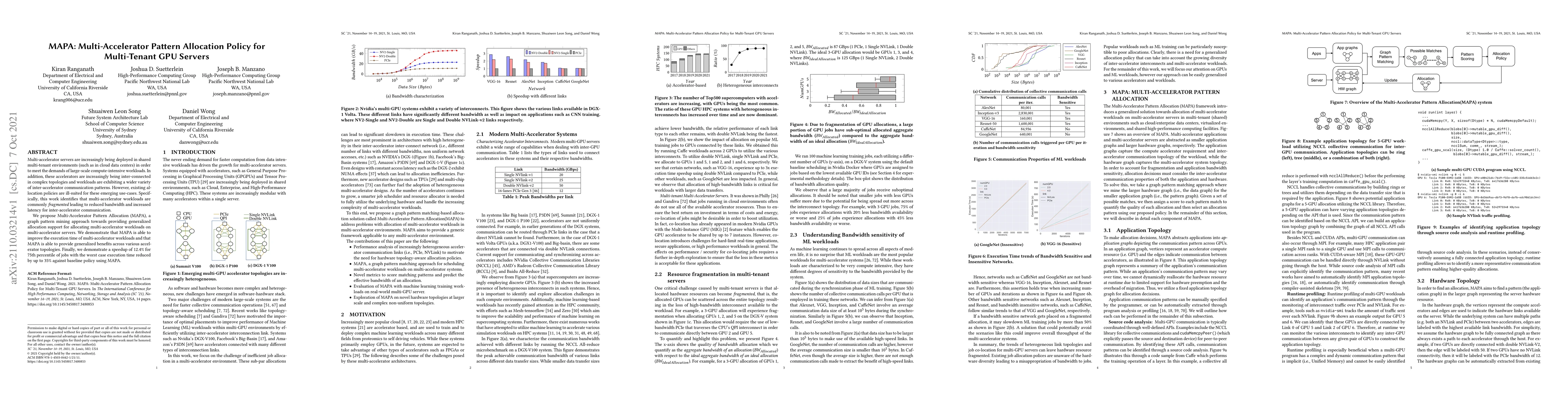 The paper proposes MAPA, a Multi-Accelerator Pattern Allocation Policy for optimizing resource allocation in multi-tenant GPU servers. MAPA addresses the inefficiencies of existing allocation policies by using graph pattern mining to improve inter-accelerator communication and execution time, achieving up to a 12.4% speedup and a 35% reduction in worst-case execution times.