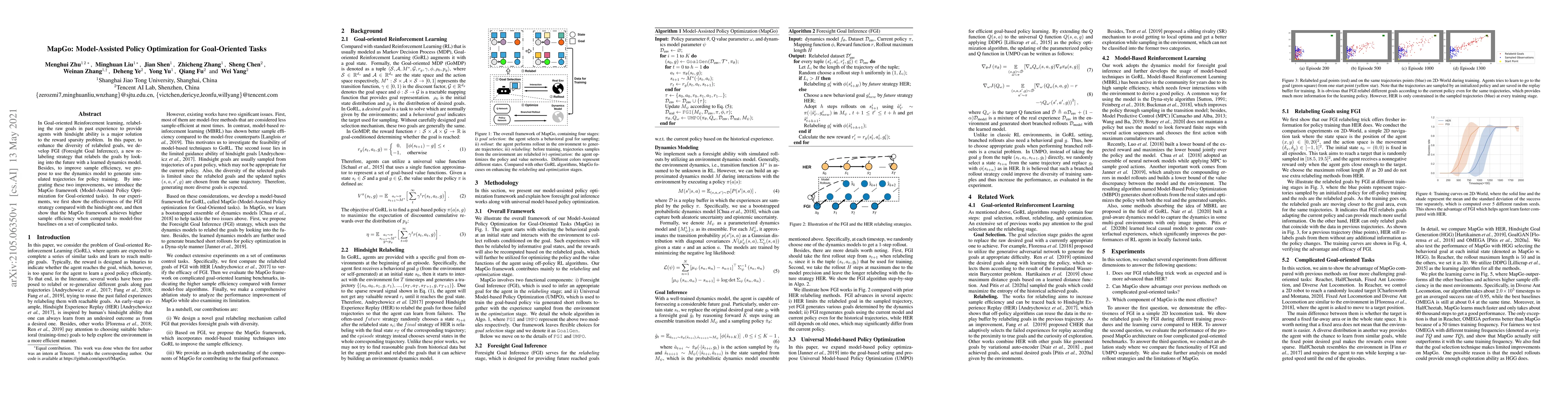 The paper introduces MapGo, a framework for goal-oriented reinforcement learning that employs FGI (Foresight Goal Inference) to enhance goal diversity and uses a learned dynamics model for simulated trajectory generation to improve sample efficiency. Experiments demonstrate FGI's effectiveness and MapGo's superior sample efficiency over model-free baselines.