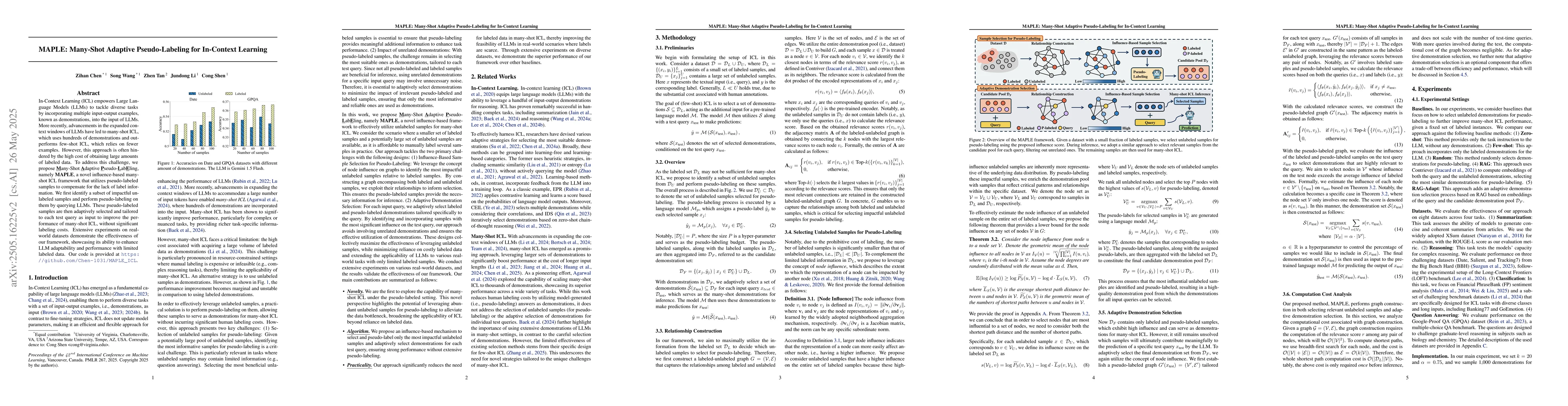 This paper introduces MAPLE, a method to improve Large Language Models' performance on in-context learning tasks with limited labeled data, using pseudo-labeled samples and adaptive selection.