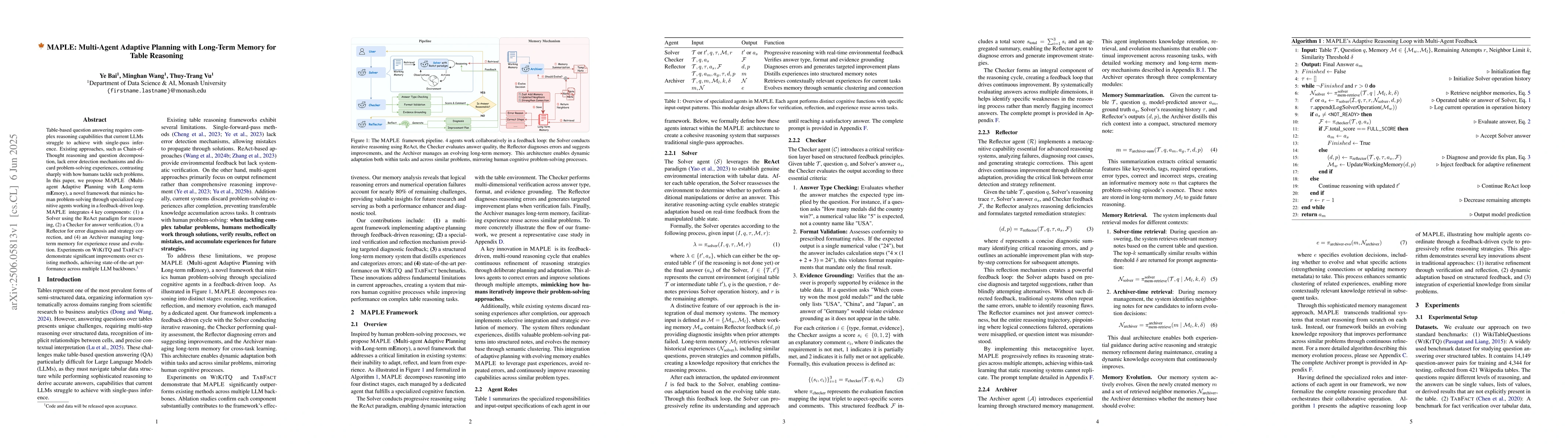 MAPLE improves table-based question answering with a novel framework that mimics human problem-solving through specialized cognitive agents working in a feedback-driven loop. It achieves state-of-the-art performance on multiple LLM backbones.