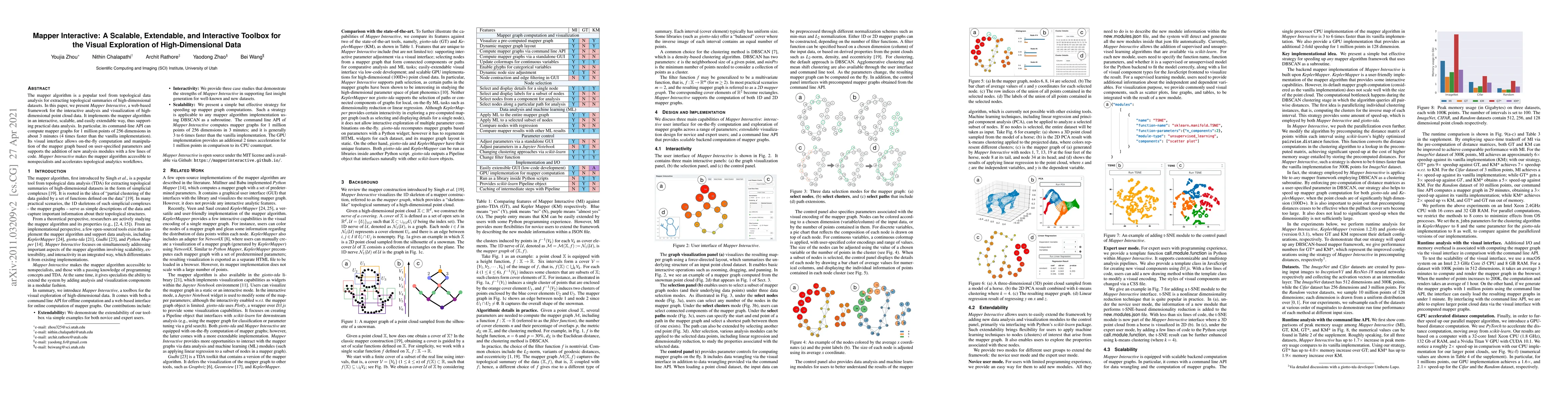 Mapper Interactive is a scalable, extendable web-based toolbox for interactive visualization of high-dimensional data using the mapper algorithm. It significantly speeds up computation and allows for dynamic manipulation and addition of new analysis modules, making topological data analysis accessible to nonspecialists.
